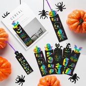 【2022最新】FINGOOO ハロウィン スクラッチアート 48枚 しおり ブックマーク おしゃれ 塗り絵 お絵描き 工作 DIY 手作り プレゼント 無地 虹絵ー (スクラッチアート) | asaRulu0511