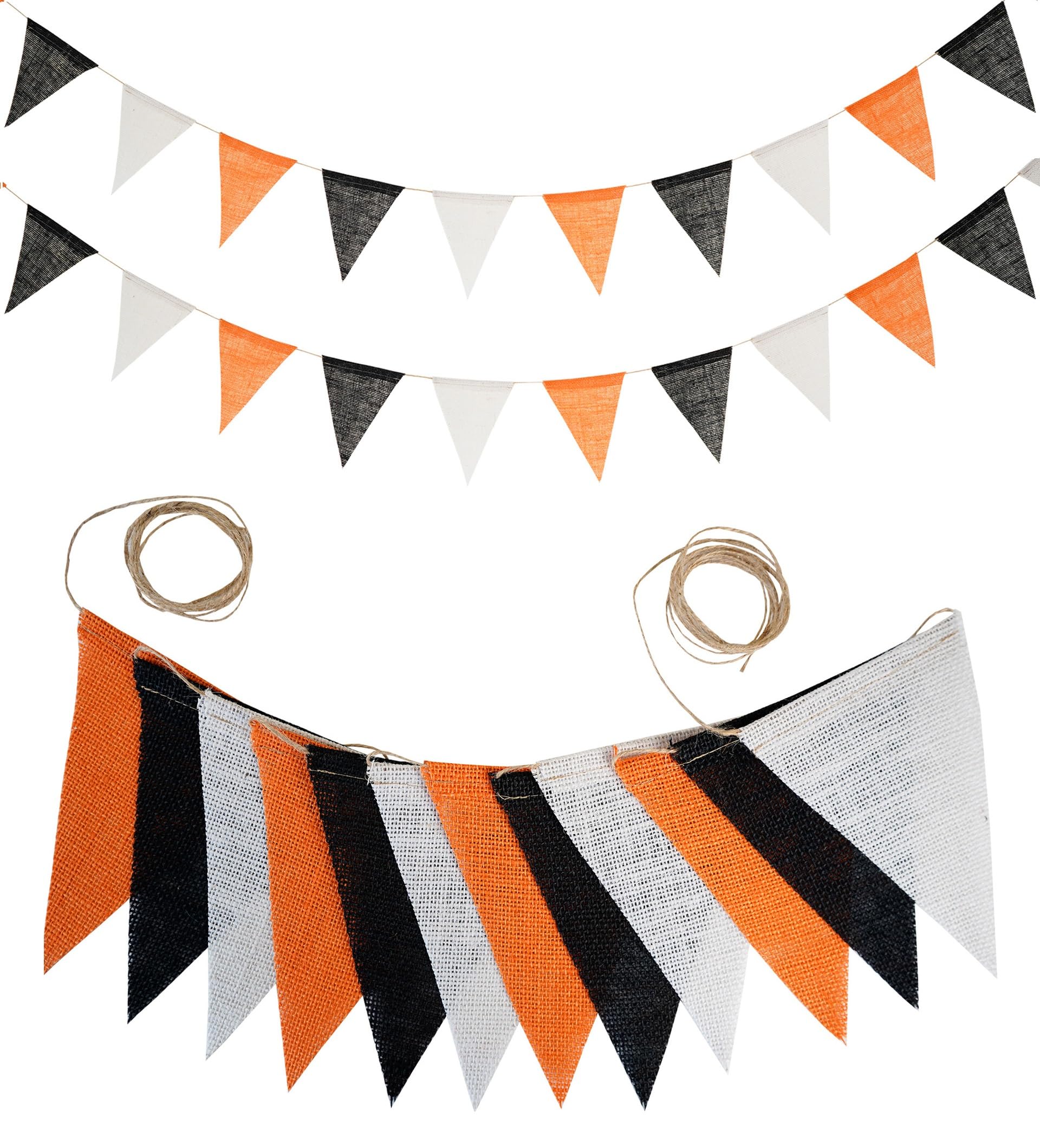 Bethany Home ハロウィン 三角旗 2本セット ガーランド お盆 亜麻 約3.6M長 麻ロープ キャンプフラッグ バナー アウトドア旗 パーティー飾り うらぼんえ 感謝祭 誕生日 子供部屋飾り 壁飾り 記念日 可愛い リサイクル可能 写真 デコレーション(オレンジ-2PCS)