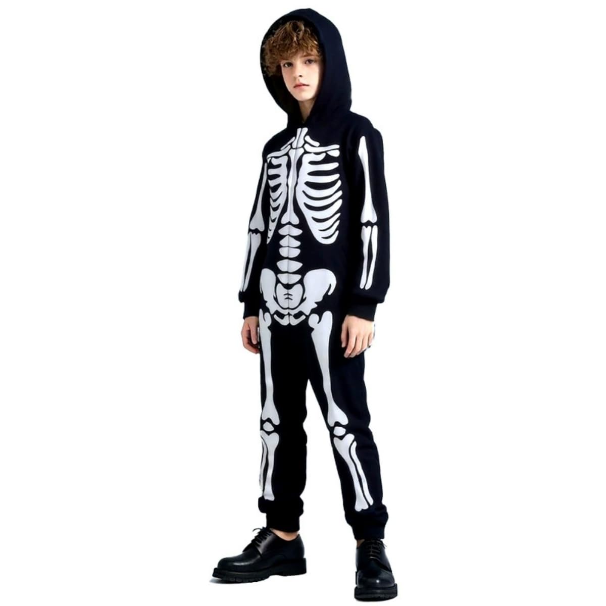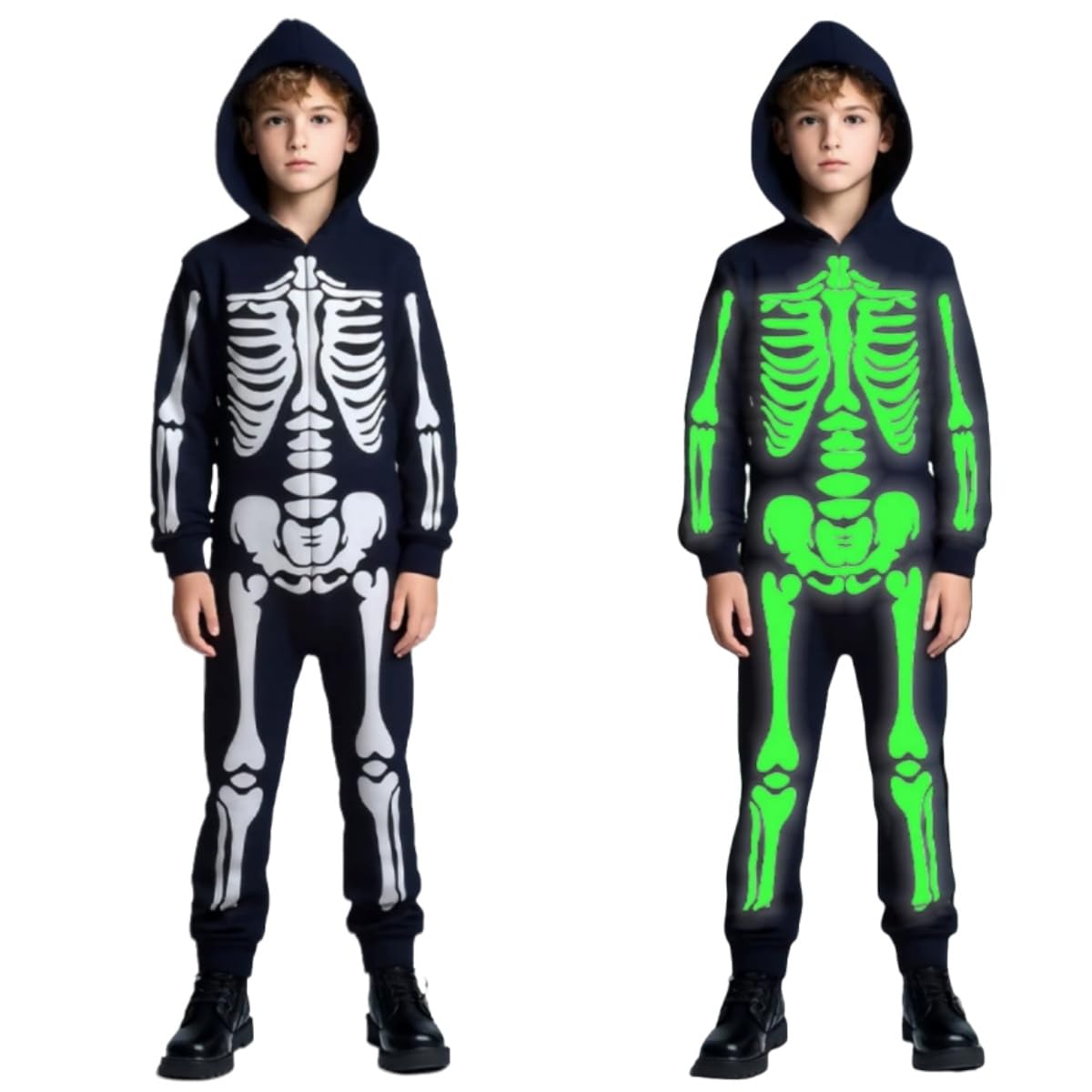 ハロウインイベントに欠かせないホラー風子供骸骨 コスプレ衣装セット、これ一枚で簡単変身でき,黒い場所で蛍光効果がありますので目立つこと間違いないです。