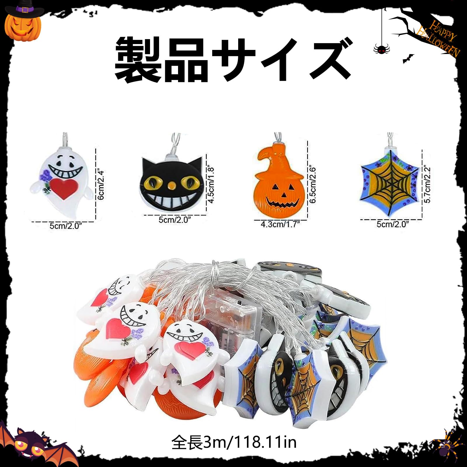 【サイズ】長さ:3m。20球。カボチャと幽霊と蜘蛛の巣と猫の造型を組み合わせて、とてもおしゃれです。