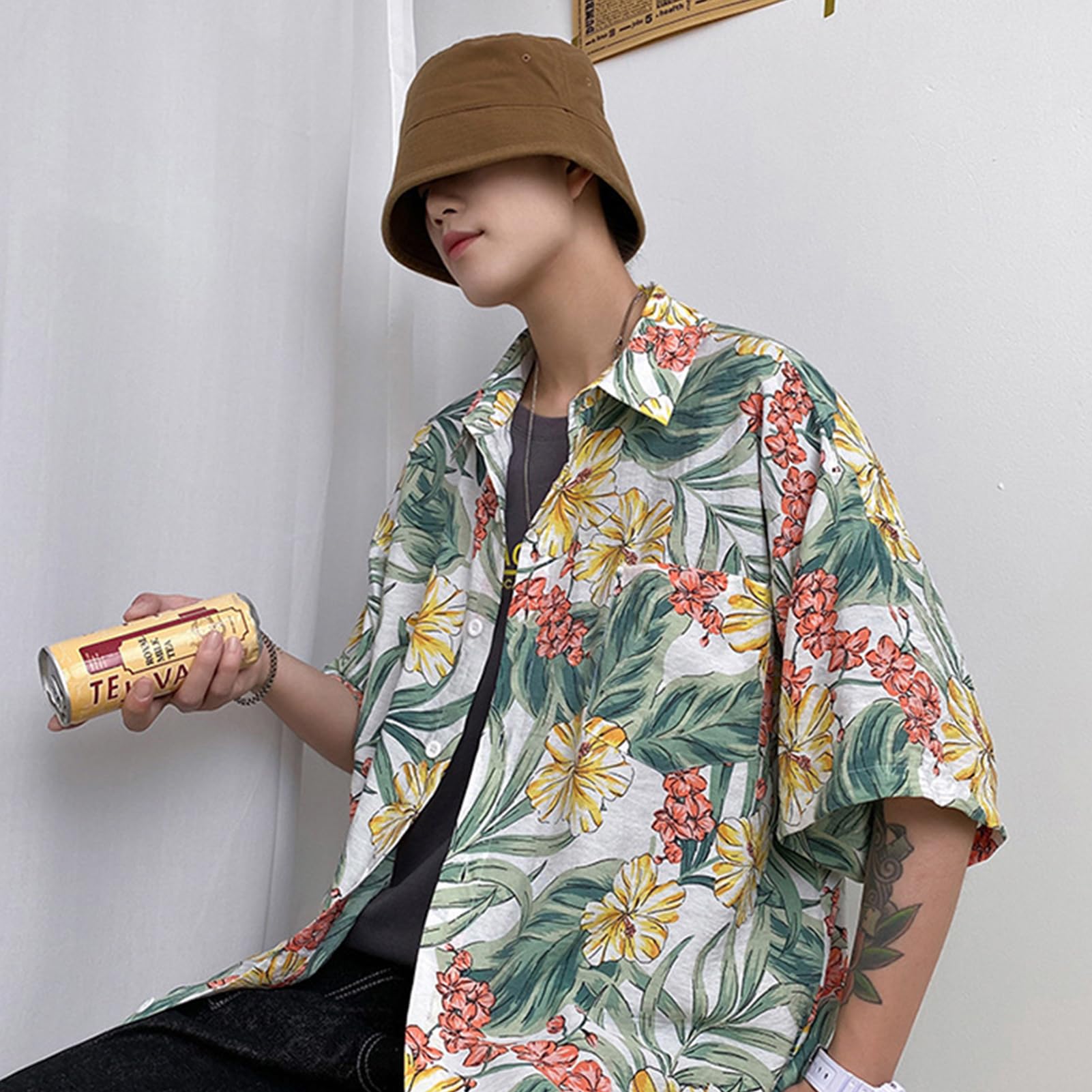 【おしゃれなアロハシャツ】(ワンサイズ上おすすめします)夏にピッタリな涼しげなプリント柄は幅広い層のお客様にオススメな商品です。ビーチで着ればおしゃれで、トラベルに行くために買いましょ!
