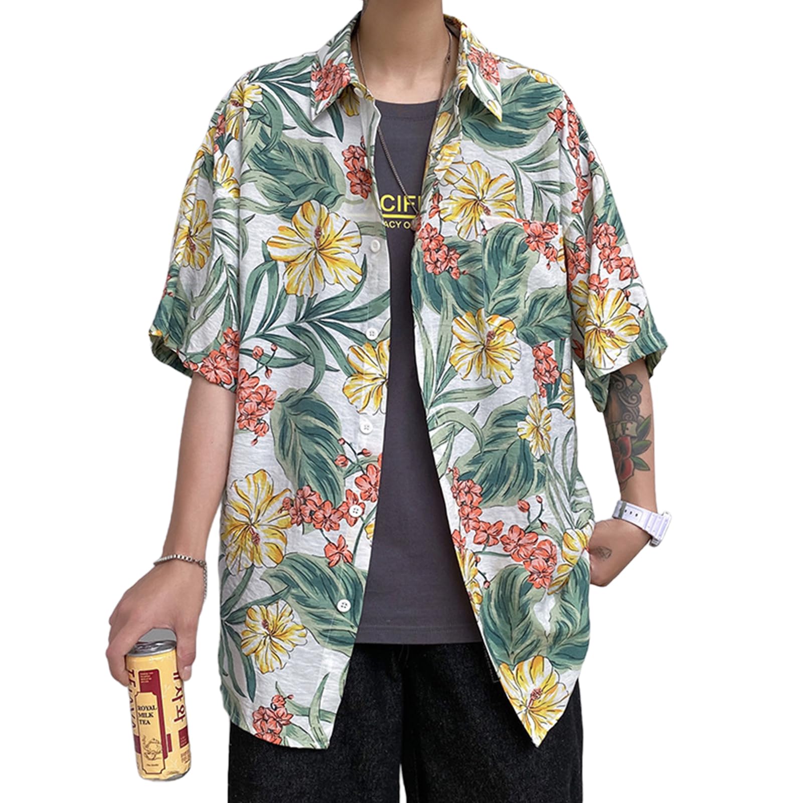 【在庫処分】[Matreeglam] アロハシャツ ビーチシャツ 花柄シャツ 男女兼用 夏 半袖シャツ ハワイ風 ゆったり 薄手 爽やか 大きいサイズ おしゃれ 通気 軽量 夏物 旅行 ワンサイズ上 | asaRulu0511