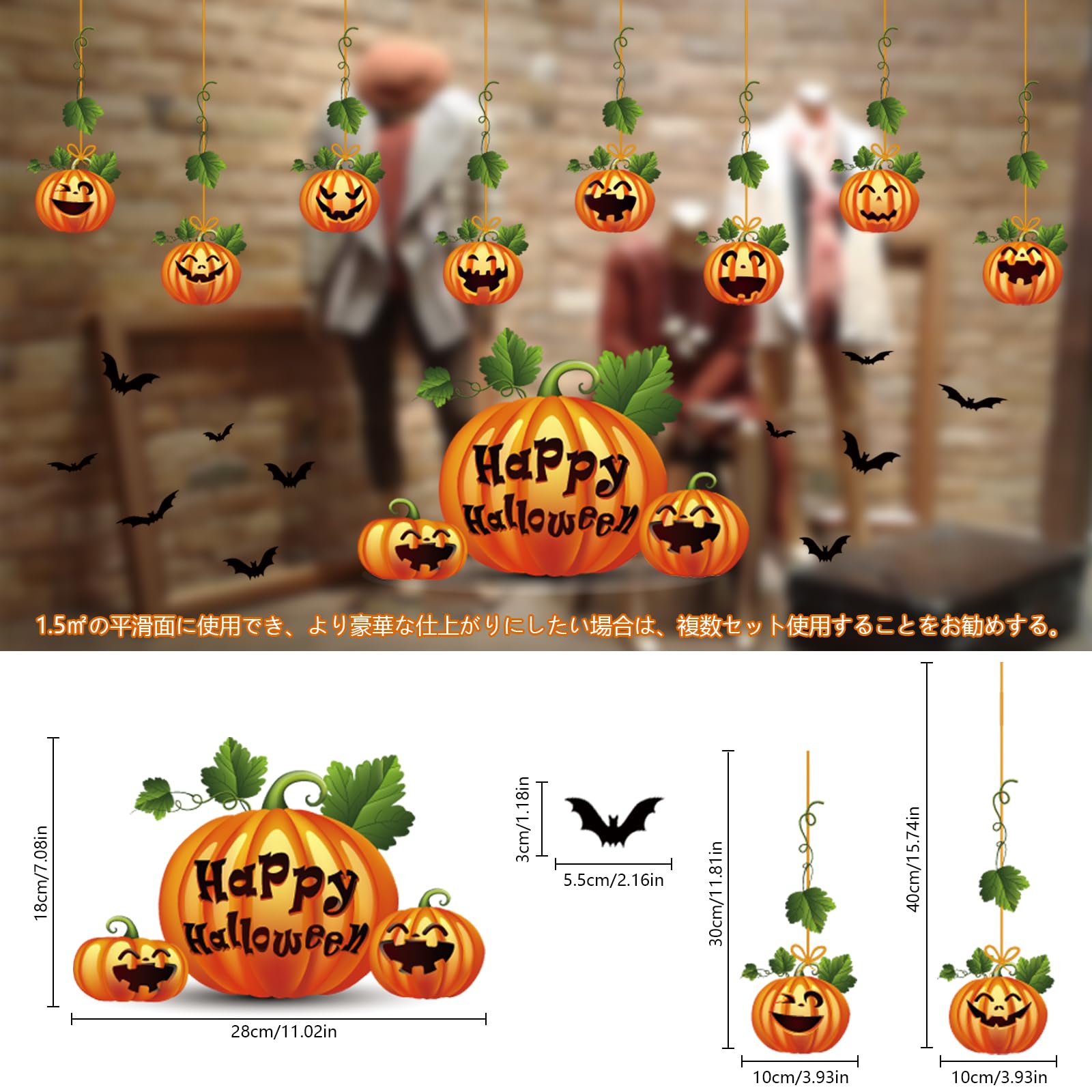 【多シーンで活躍】ハロウインの時に雰囲気メーカー、家庭で使用する場合は、ガラスドア、冷蔵庫、窓、タイル壁などに適しています。店内で使用する場合は、滑らかな表面であればどこにでも使用でき、ニーズに応じて貼り付けることができます。