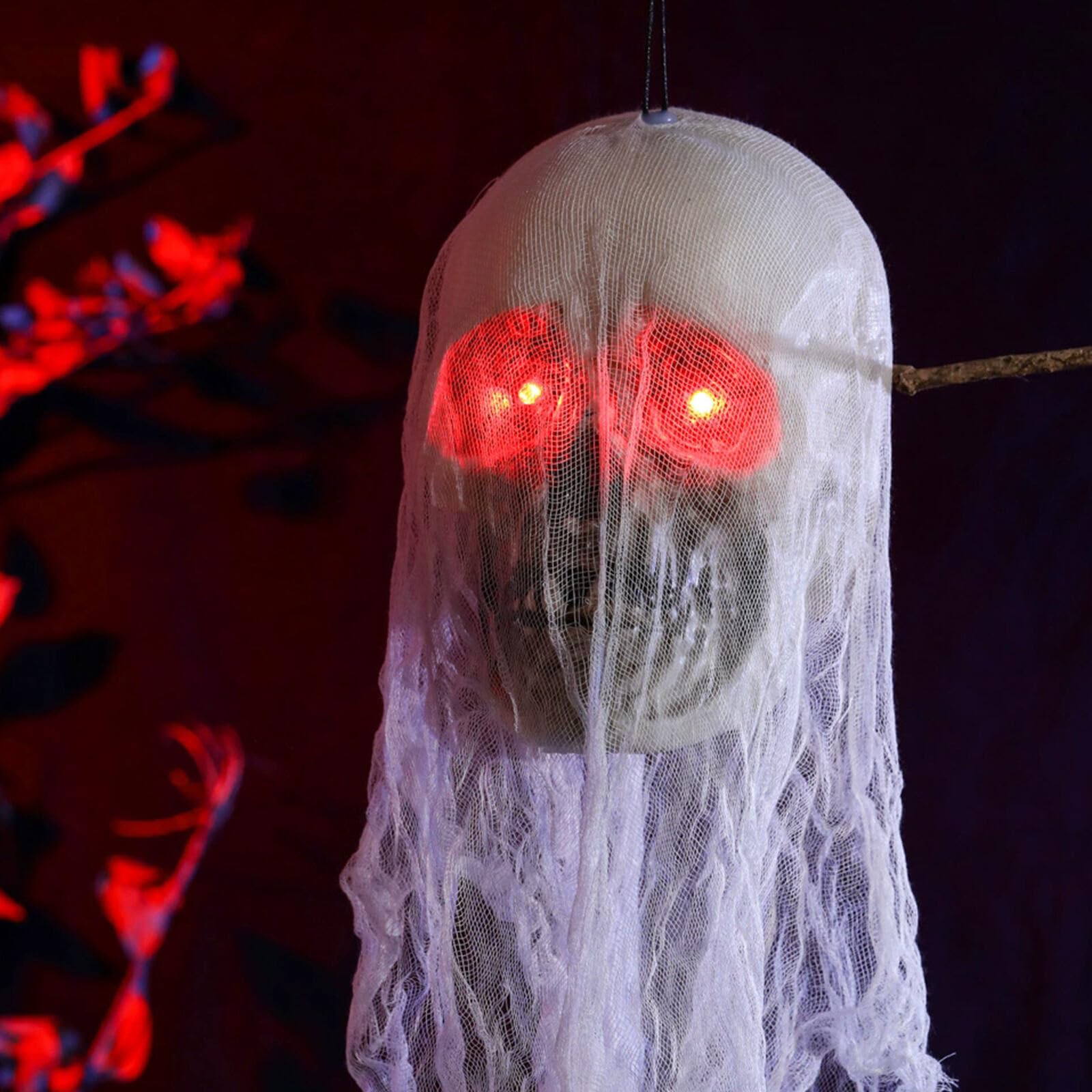 【新着商品】2点セット ハロウィン飾り 髑髏 ハロウィーン装飾 ホラー 怖い 雰囲気満点 白いガーゼが光る鬼頭 幽霊 骸骨 吊物 吊り下げ 肝試し 鬼 死神 悪魔 お化け屋敷 スカル 飾り屋内 屋外 文化祭 学園祭 パーティー 装飾 イベント用品