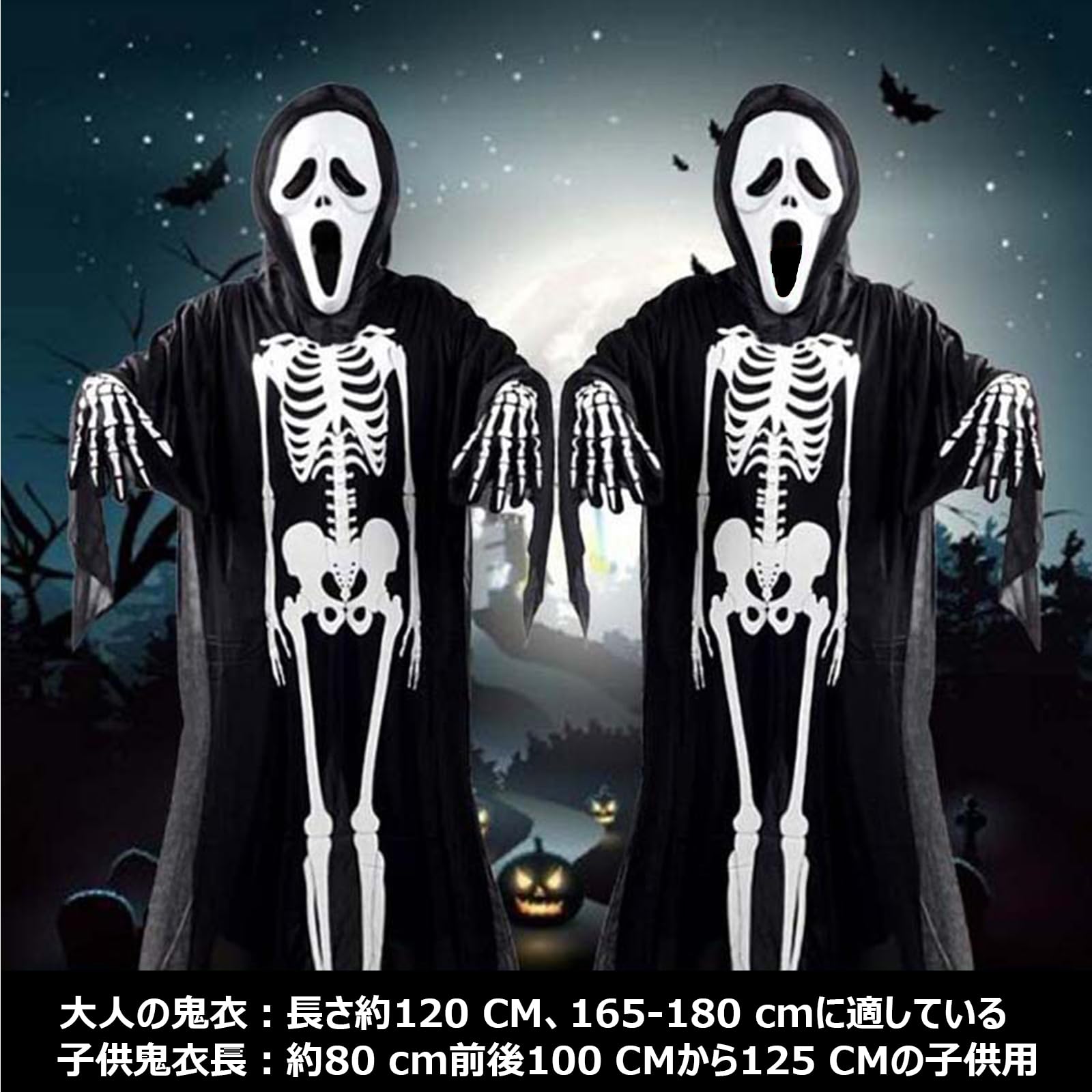 コスプレ 衣装 ハロウィン 仮装 骸骨ドクロコスチュームセット 変装用 衣装 幽霊 恐怖 お化け 屋敷 雰囲気満点 装飾 マスク+骸骨マント+手袋 3点セット 子供用 (黒)