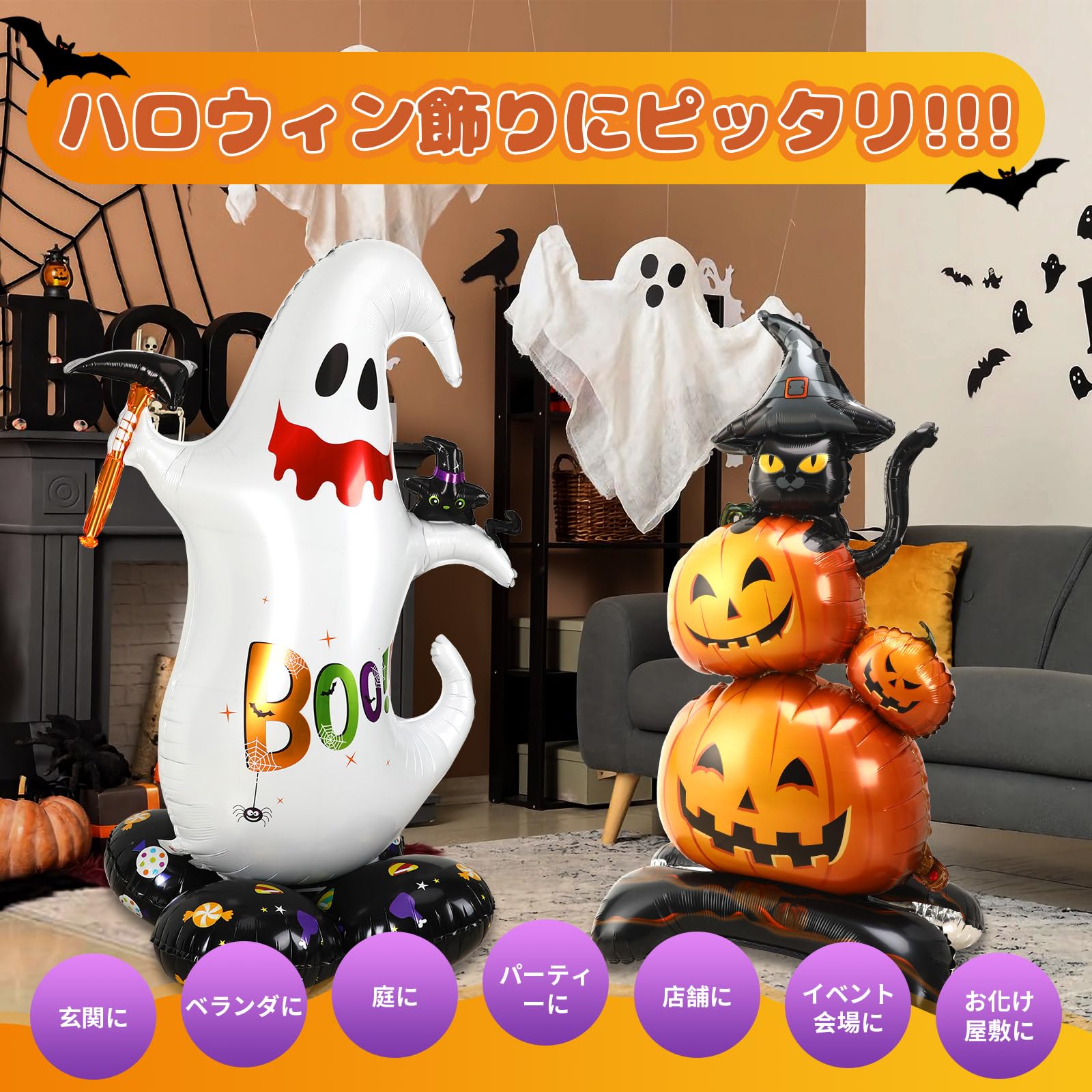 JANLOFO ハロウィン バルーン 2個 高さ約120cm ハロウィン 装飾 風船 かぼちゃ ゴースト 玄関 お店 パーティーグッズ イベント デコレーション