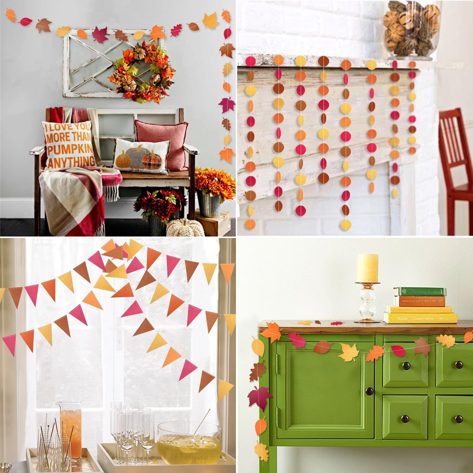 Lakymisy 感謝祭飾り 紅葉 ガーランド 飾り付けセット 3本 三角旗 紅葉旗 丸形旗 フェルト製 秋飾り もみじガーランド 撮影道具 収穫の季節 ハロウィン 装飾 グッズ 3M