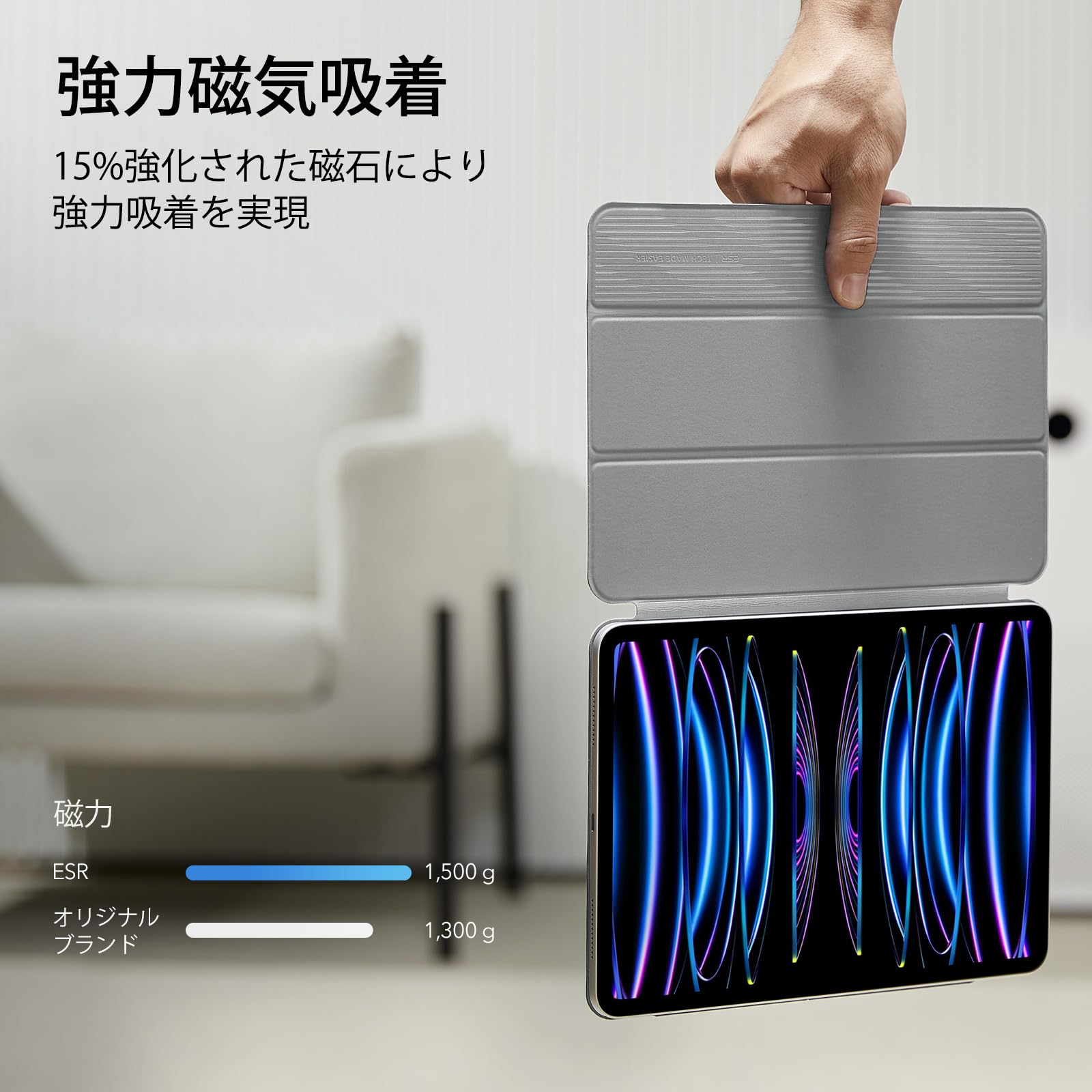 【数量限定】ESR iPad Pro 11インチ ケース 第4/3/2世代(2022/2021/2020)専用 強力マグネット吸着式 スリムな三つ折りスタンドケース Pencil 2対応 オートスリープ/ウェイク機能 グレー