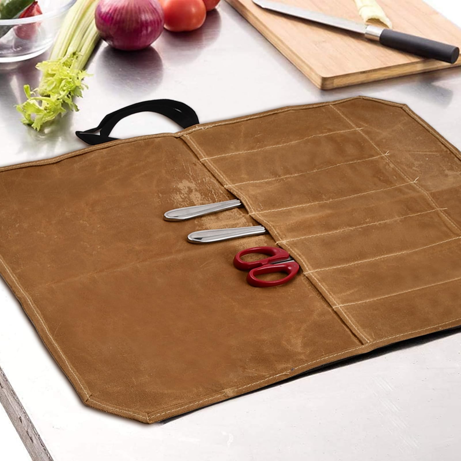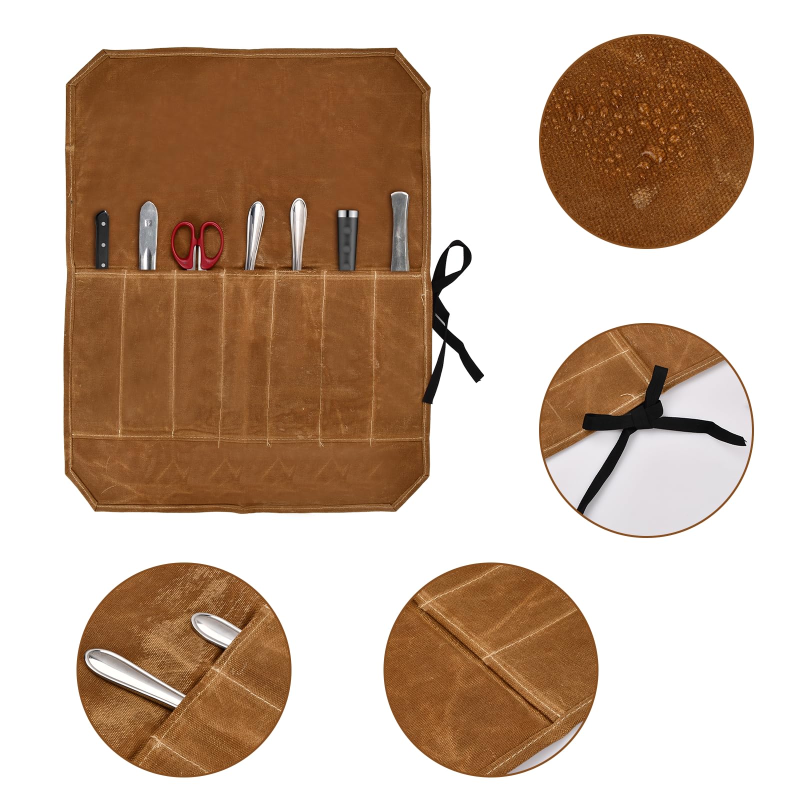 【プレミアム素材】ナイフロールは高品質で耐久性のある12オンスのワックスキャンバス生地でできており、軽量で耐久性があり、お手入れが簡単です。このナイフロールバッグは切断や突き刺しに強く、傷を残しません。