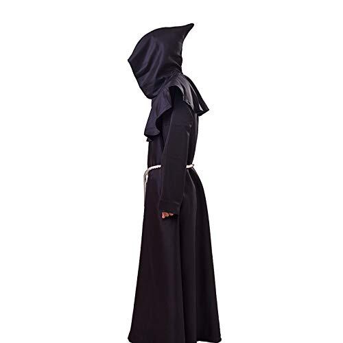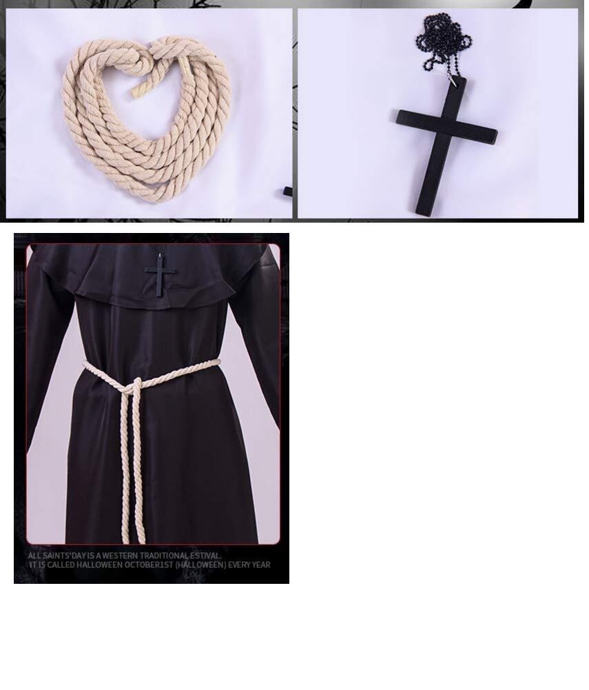 4点セット 4色 中世 修道士 神父 牧師 僧侶 ロング フード ローブ 大人 男性用 コスチューム ハロウィン コスプレ 仮装 変装 パーティー 十字架ステージ衣装 クロス贈る (ブラック XL(180~185cm))