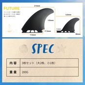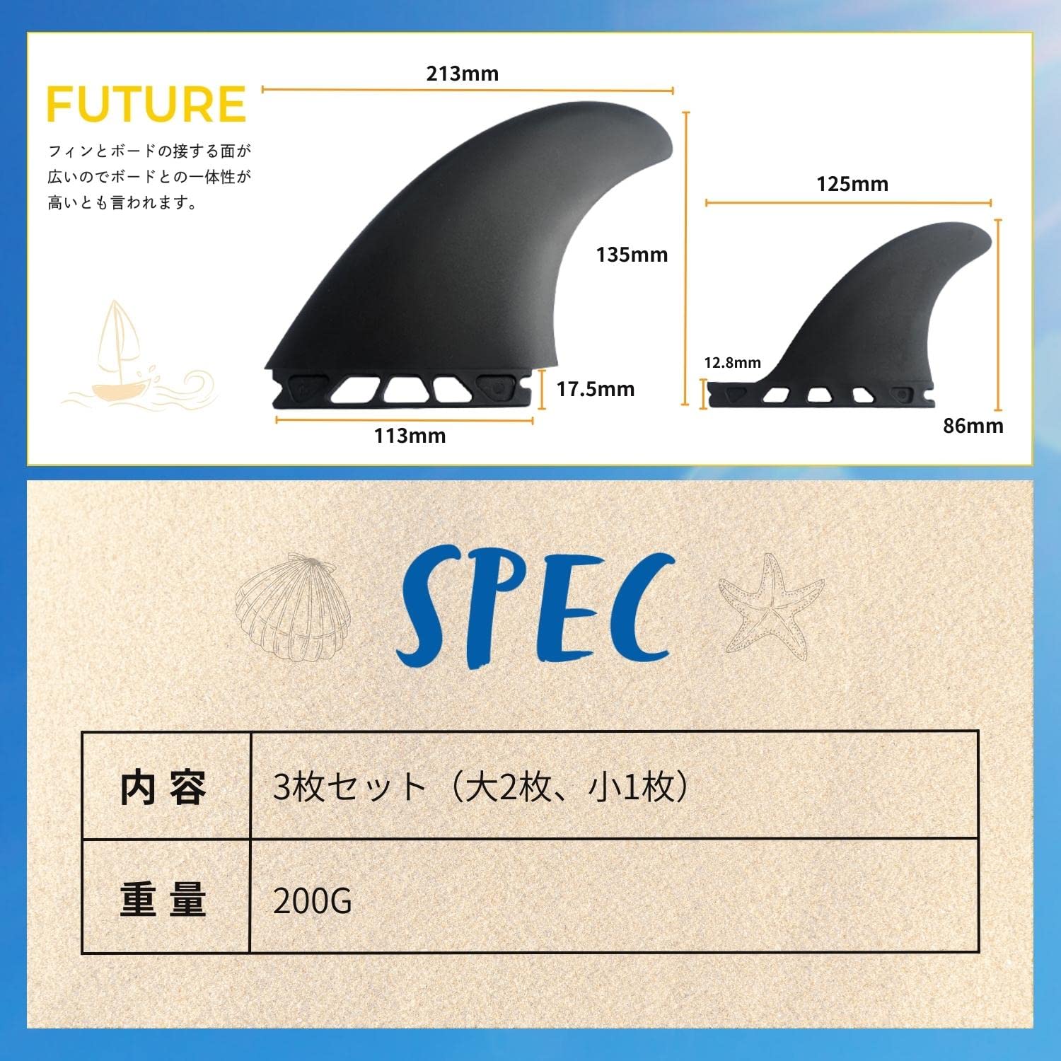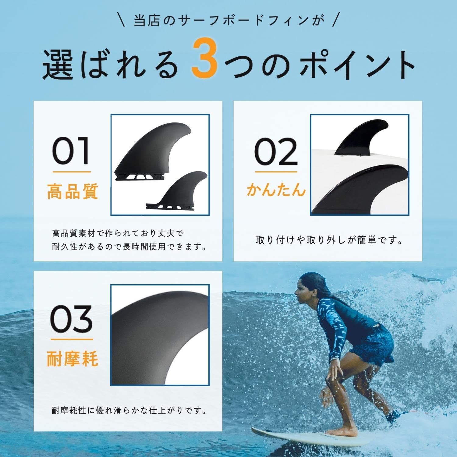 FUTURE対応の3フィンセット。 グラスファイバー強化PVCにより、高い強度と耐摩耗性を備えており、長寿命で優れた性能を発揮します。