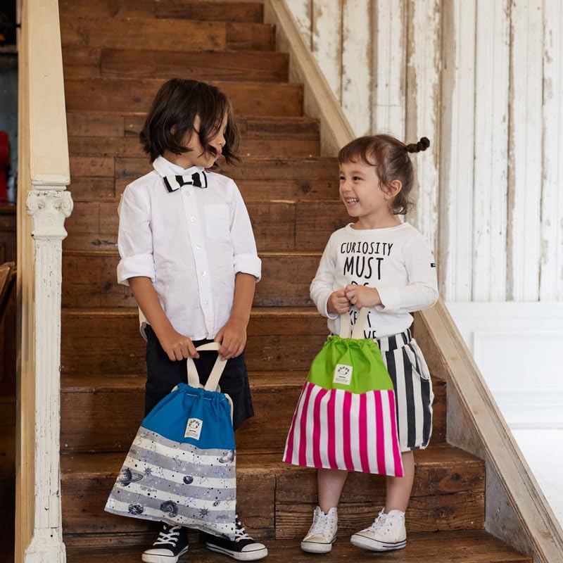 ・お子様でも扱いやすい巾着タイプ。服以外にもおもちゃやシューズを入れたりとマルチに活躍する巾着です。