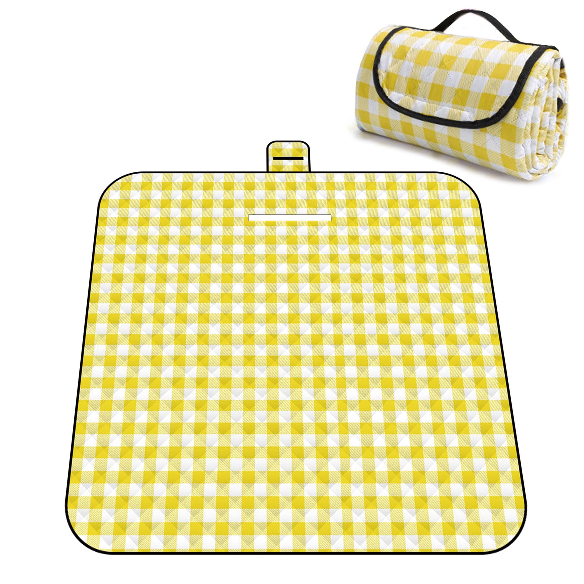 CLEAN HOUSE レジャーシート 大判 厚手 洗濯機で洗える 防水 200×200cm 4-8人用 イエロー ギンガムチェック柄