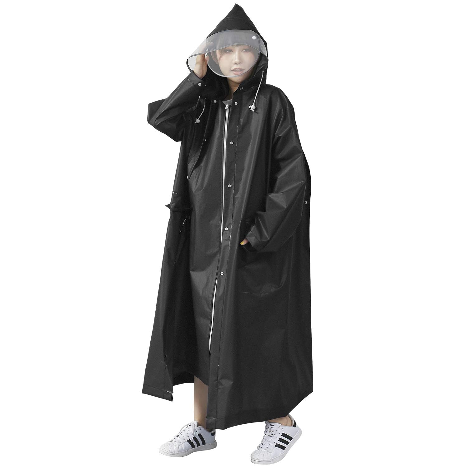 [BXINF] レインコート 二重つば ポケット2個 男女兼用 レインポンチョ ロング丈のおしれなレインウェア 梅雨対策 自転車 原付用 通勤 通学 防風防水 防塵防雪