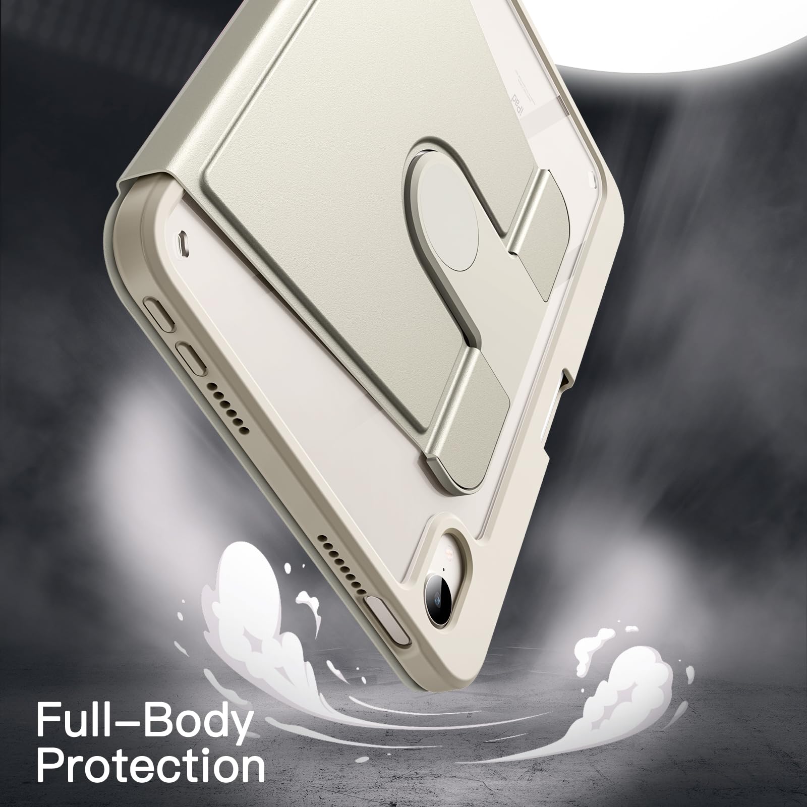 【数量限定】JETech 回転ケース iPad mini (A17 Pro 2024 モデル、第7世代) / mini 6 (8.3インチ、2021モデル、第6世代)用 Pencilホルダー付き 360°回転保護 スタンドカバー クリアバック 自動ウェイク/スリープ (スターライト)