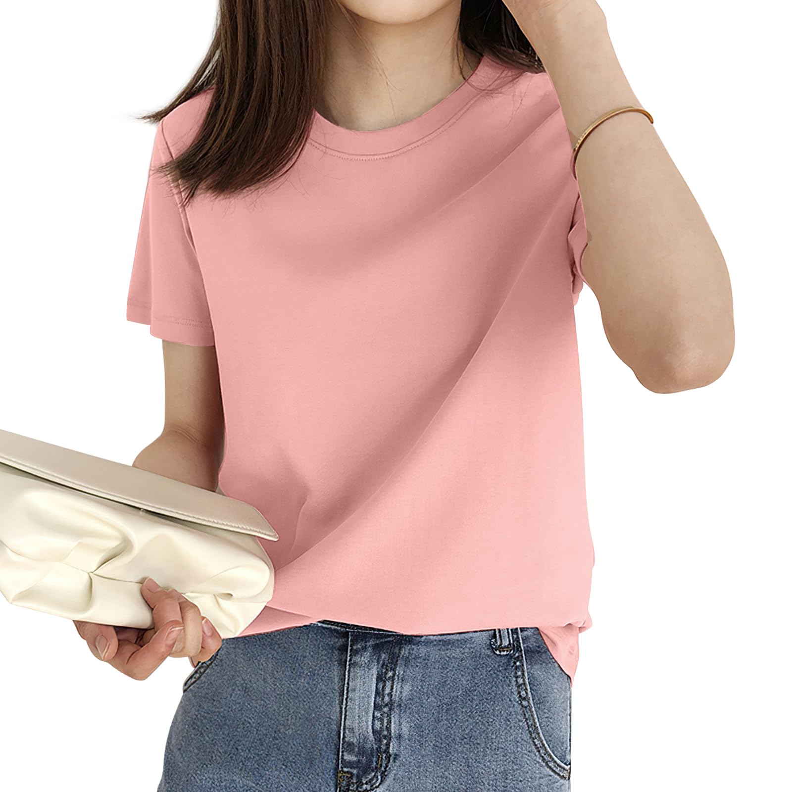 [EAXGO] 【6.35オンス x 綿100】 Tシャツ レディース 半袖 【フィット感の再定義・「独自ライン効果」で着痩せ】ティーシャツ シャツ トップス 重ね着 ゆったり 着回しカ 無地 透け防止 体型カバー おしゃれ