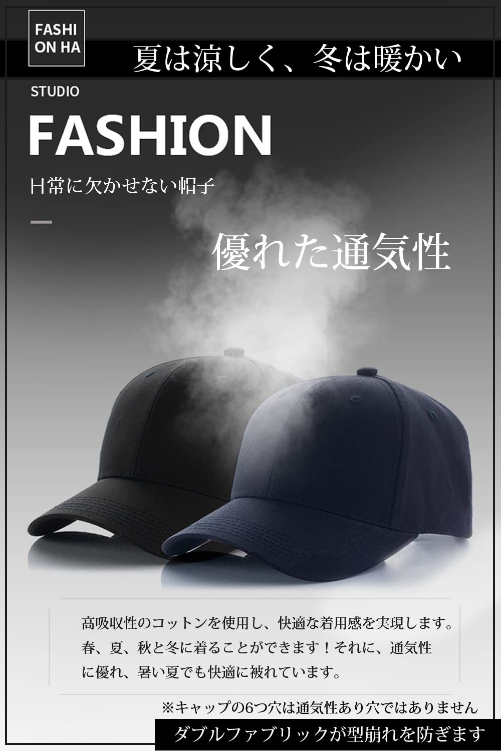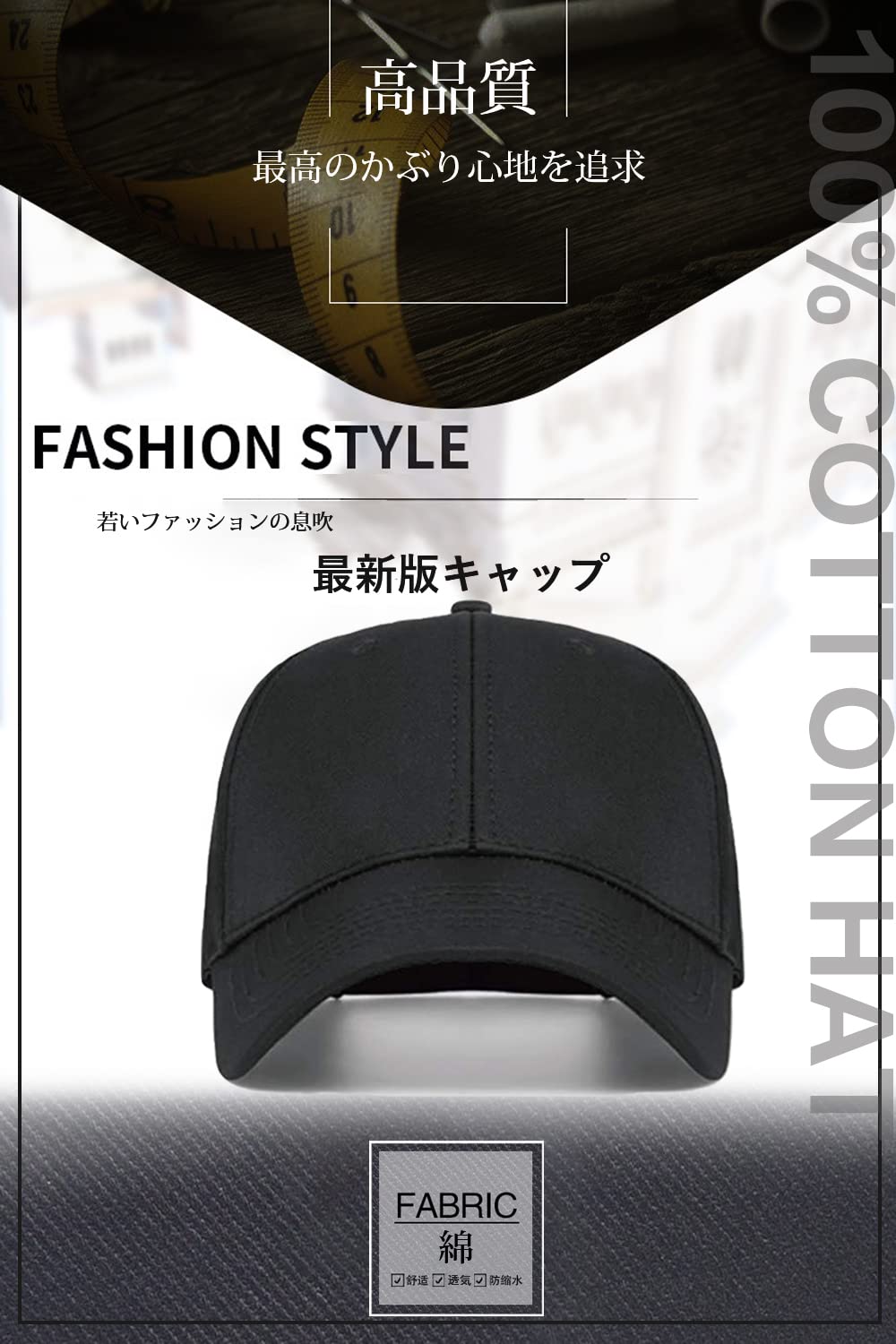 【優れた素材&洗練された品質】通気性や速乾性に優れた、涼やかなハリのあるコットンを100%使用。手洗いも出来るので夏も快適に過ごせます。快適な着用感を実現します。 春、夏、秋と冬に着ることができます。素材と品質にこだわり抜いた着心地を追求しました。※キャップの6つ穴は通気性あり穴ではありません
