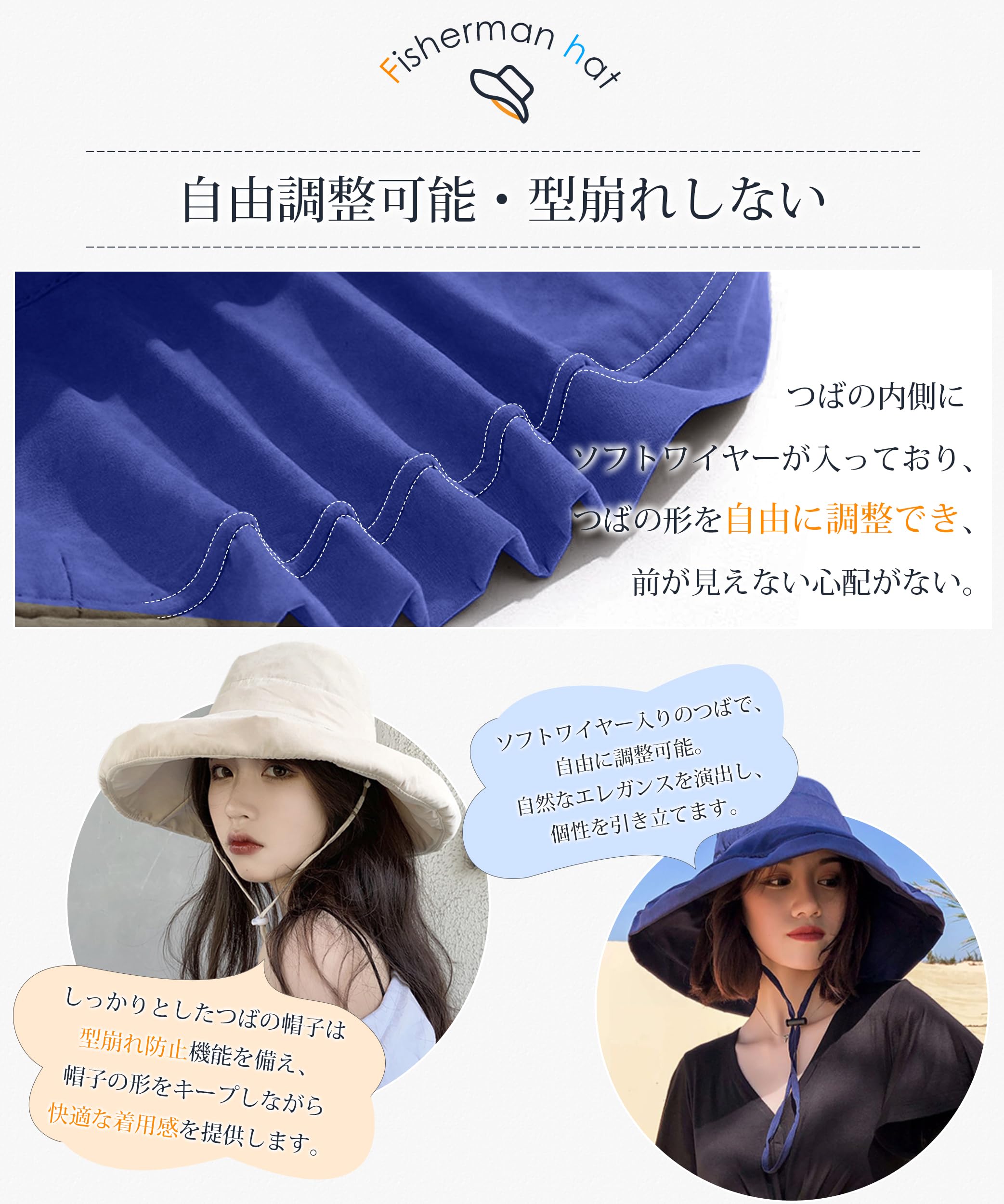 【自由調整可能・型崩れしない】 UVカット帽子は、つばの内側にソフトワイヤーが入っており、つばの形を自由に調整でき、前が見えない心配はありません。しっかりとしたつばの帽子 レディースは型崩れ防止機能を備え、帽子の形をキープしながら快適な着用感を提供します。帽子 レディースはソフトワイヤーで調整可能なつばは、自然でエレガントな雰囲気を演出し、個性的なファッションスタイルを引き立てます。