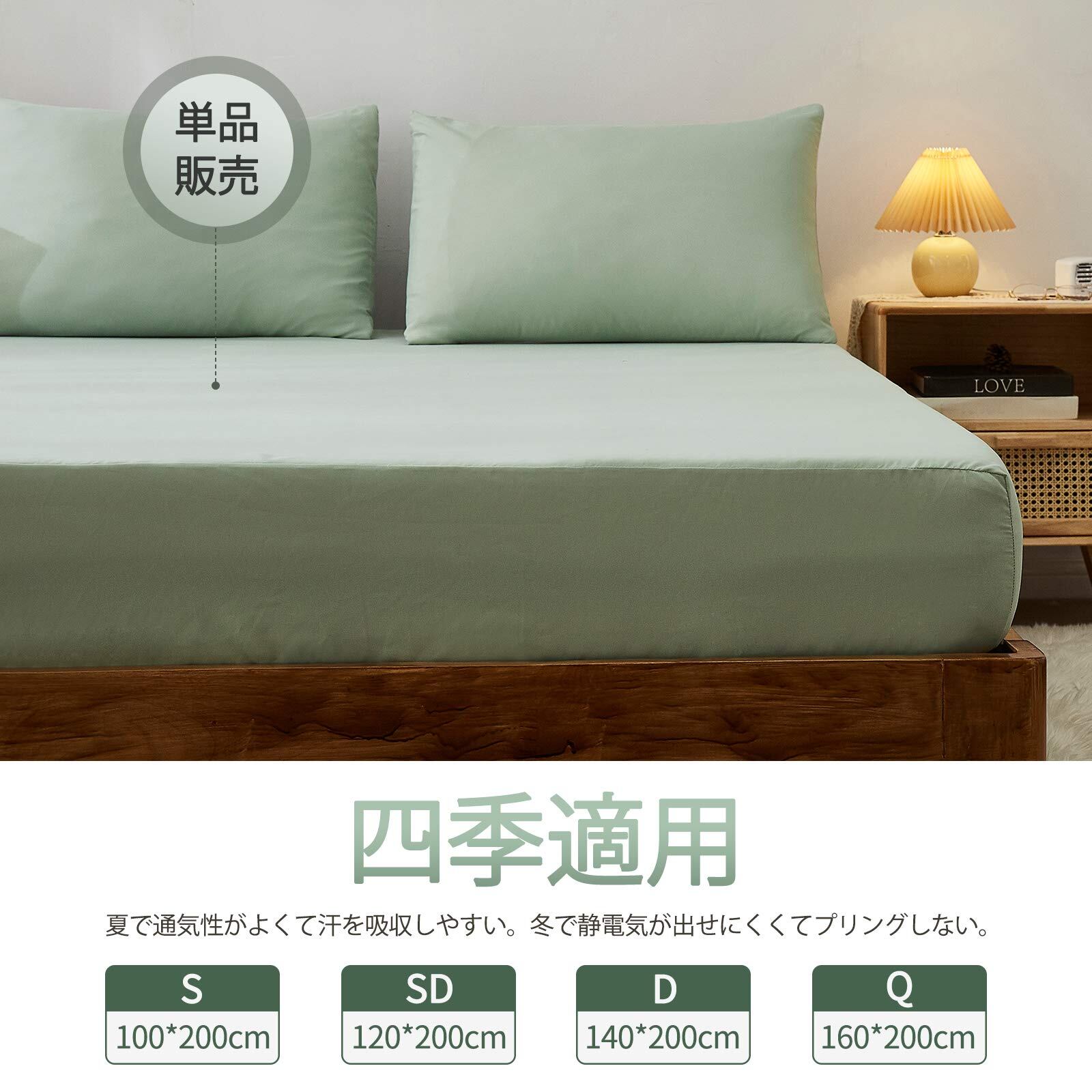 MISOLER ボックスシーツ 吸水速乾 抗菌防臭 オールシーズン ベッドシーツ ベッドカバー マットレスカバー マチ部分約30cm ベッド/マットレス/敷き布団対応 着脱簡単 丸洗い可能 (セミダブル・120X200cm グリーン)
