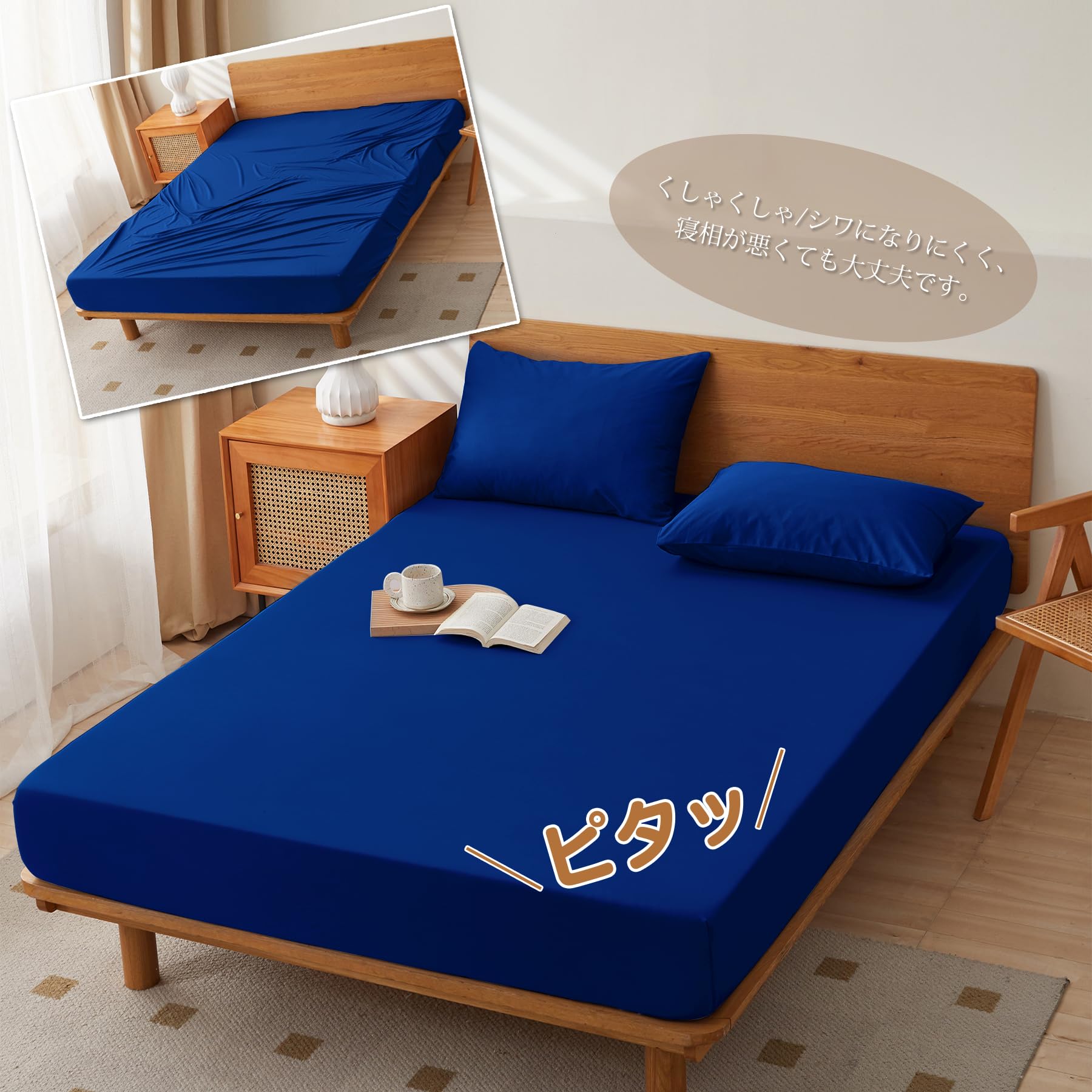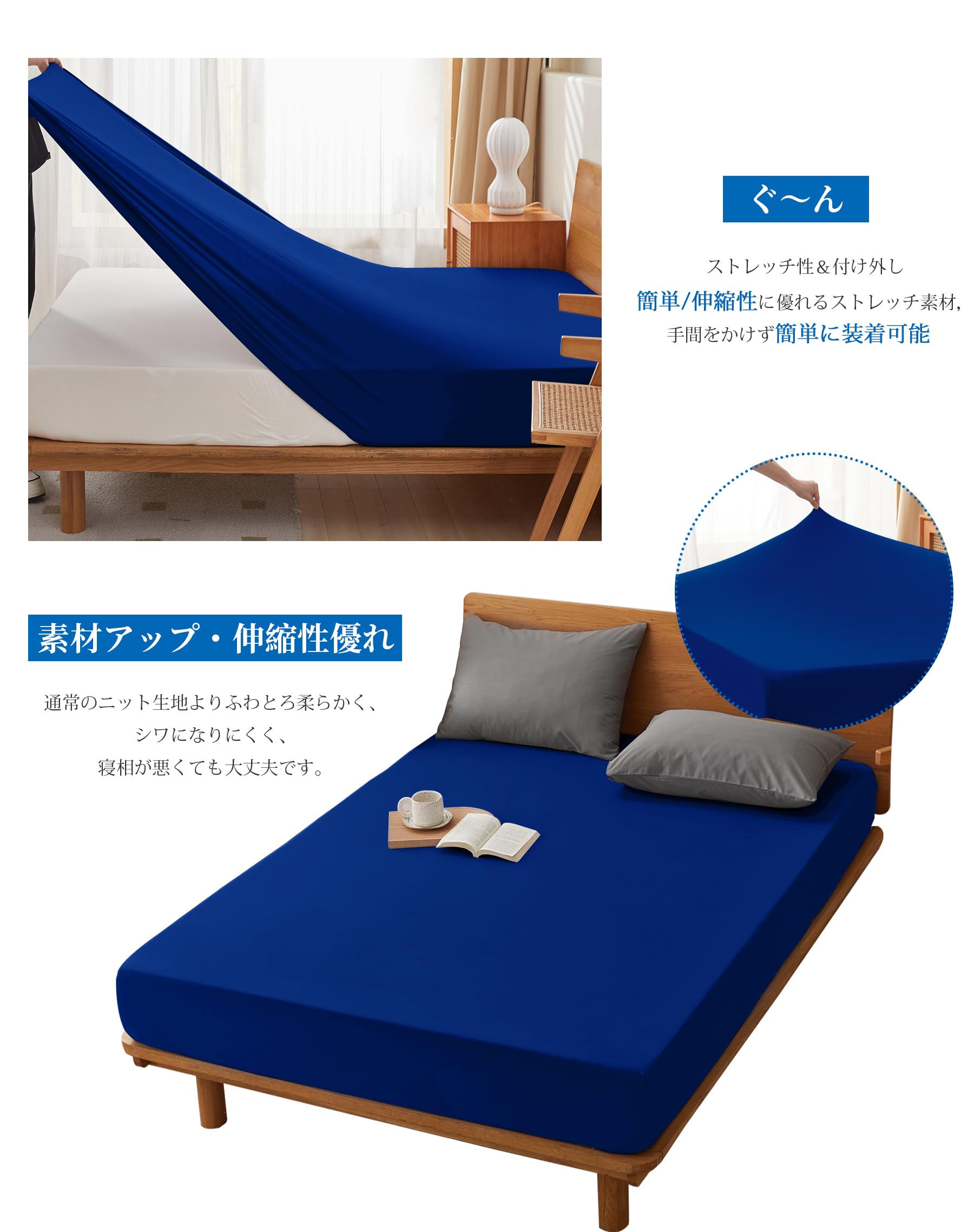 ボックスシーツ ベッドシーツ AYO 吸水速乾 毛玉なし ベッドカバー マットレス・敷ふとん兼用 のびのびぴったり 抗菌防臭 通気性 夏 冬オールシーズンしわにならない 着脱簡単(ダブル~クイーン用・140~160cm×180~210cm ネイビー)