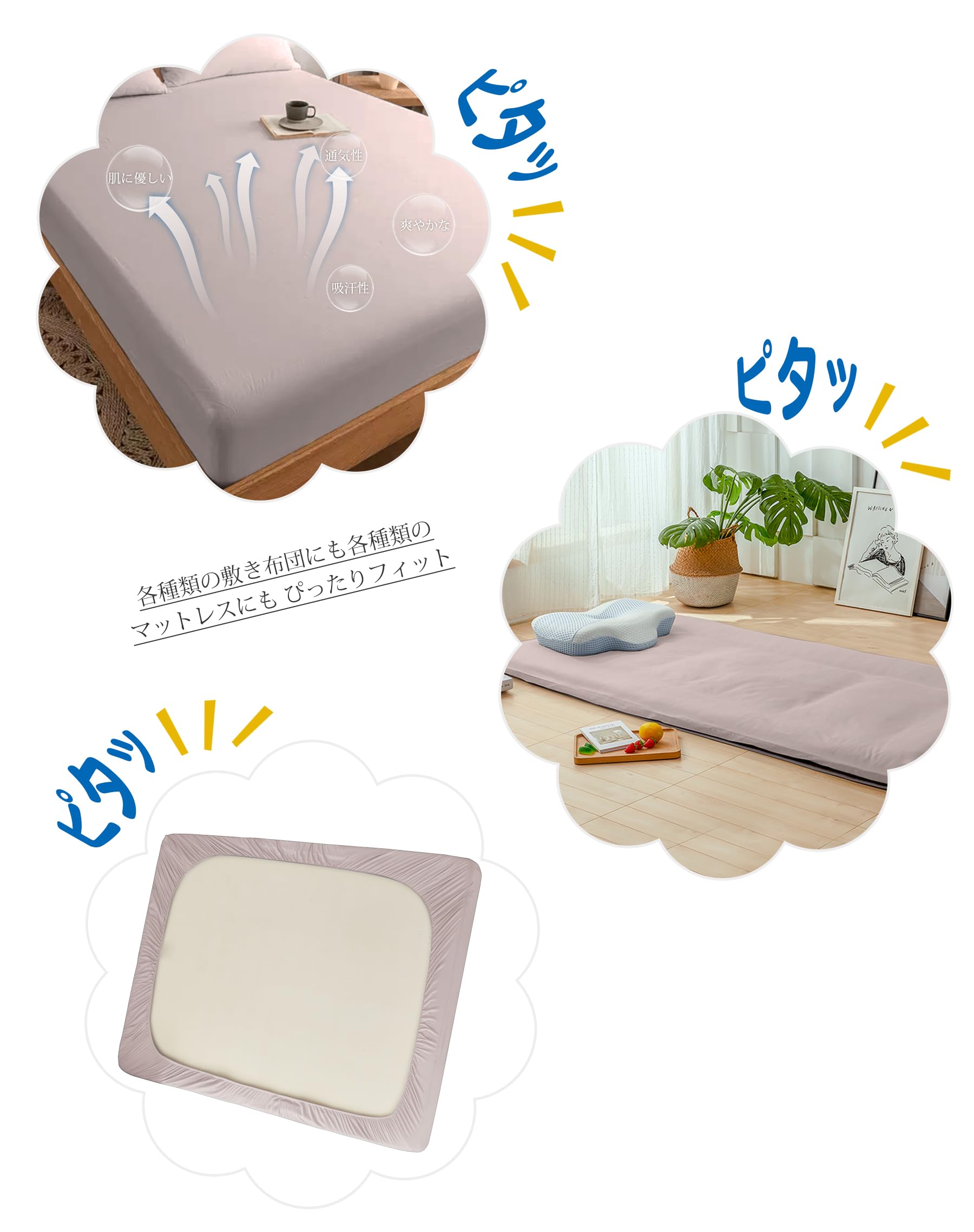 【丸洗い可能】家庭で丸洗いでき、いつも清潔に保てます。洗濯後シワが付きにくいので、お手入れも簡単です!洗い替え用に2枚以上のご購入をお勧めします。洗い替え用に、お客様用に、何枚あっても重宝します。*洗濯機OK(ネット使用) 【オールシーズン向けシーツ】吸湿・速乾・通気性に優れ、静電気防止でムレにくく、汗をかいてもベタつかずサラサラ感があり、一年中快適に安眠できます。