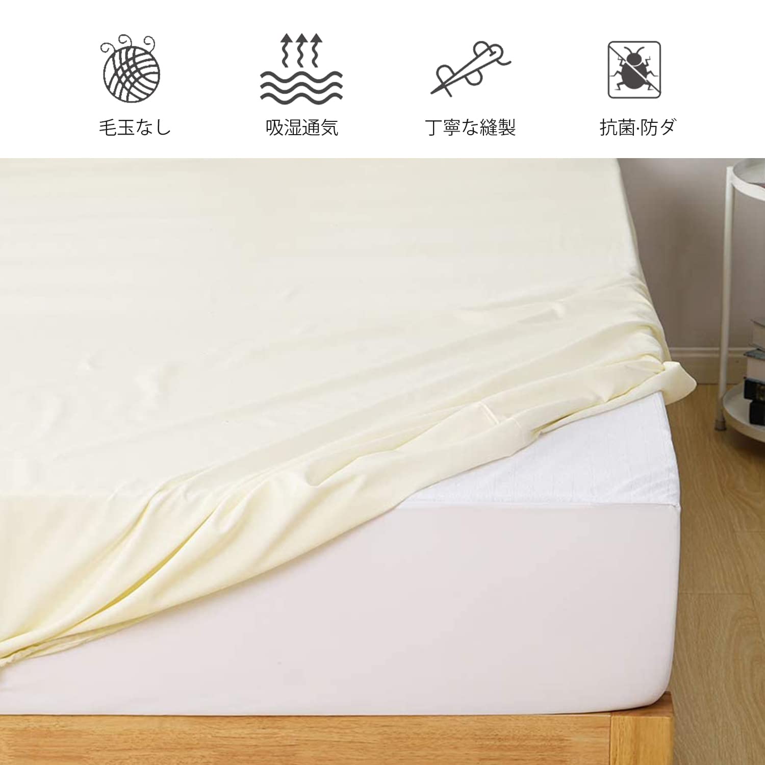 【2022最新】ボックスシーツ シングル 綿100% シーツ ベッドシーツ ベッドカバー マットレスカバー 洗える オールシーズン ベッド/マットレス/敷き布団対応 洋式・和式兼用 吸水速乾 毛玉なし 着脱簡単 抗菌防臭 防ダニ (シングル・100X200cm アイボリー) | asaRulu0511