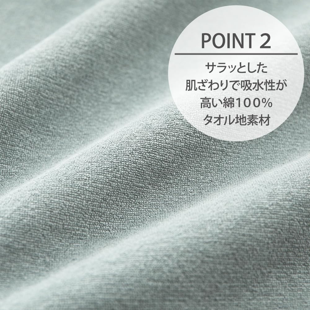 素材構成 パイル部:パイル、100% 綿;グランド部:95% ポリエステル、5% ポリウレタン;