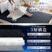 【ひんやり冷感敷きパッド】熱伝導率の高い素材を使った接触冷感敷きパッド。Q-MAX0.52以上ので、触れるとひんやり涼しく感じます。寝返りのたびにひやっとして気持ちよく、肌の熱を吸収してくれるので、暑い夜も快適にお使いいただけます。より涼しく心地良いやさしい肌触りで速乾性にも優れています。