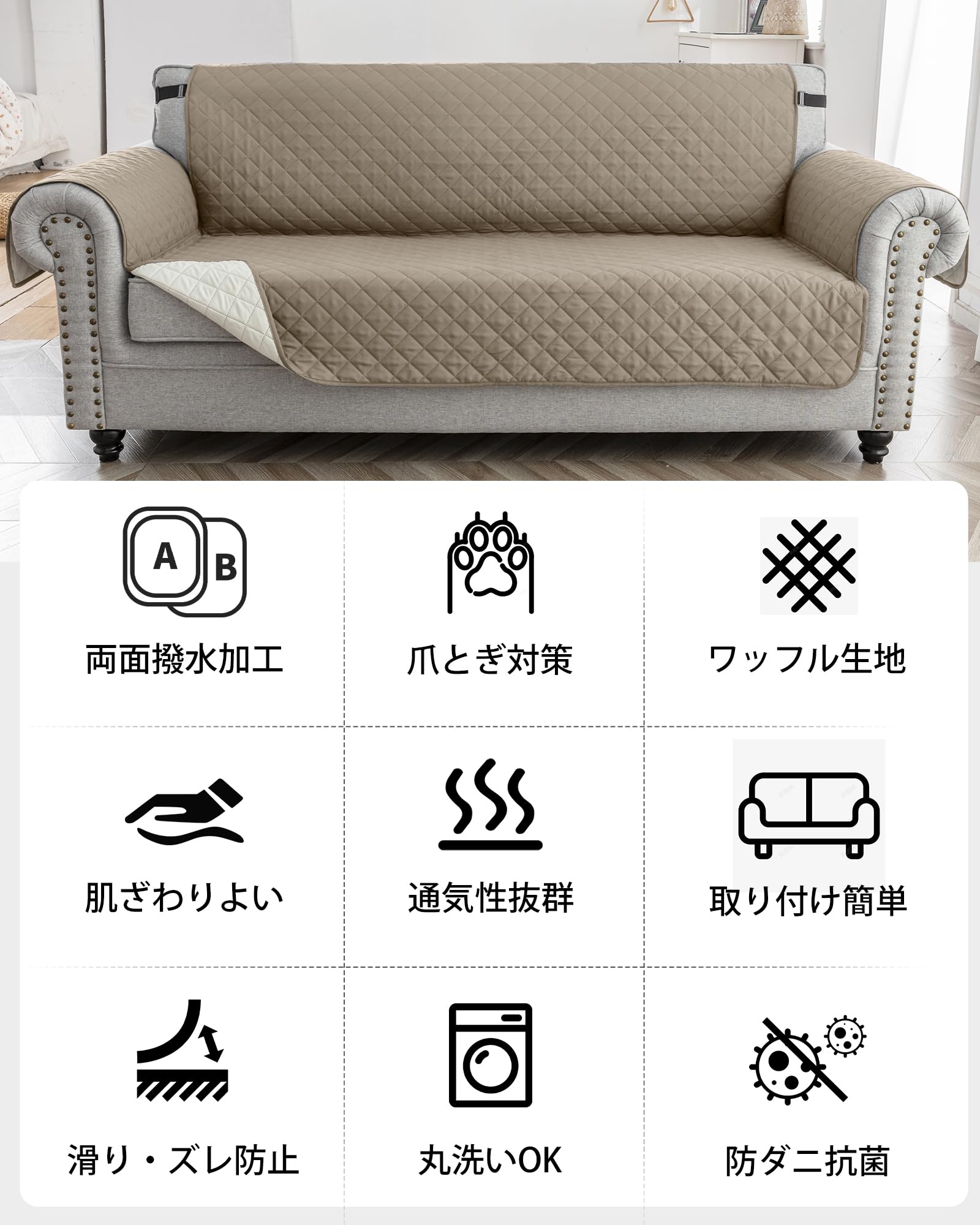 Melvint ソファーカバー 3人掛け 撥水加工 「飲み物のこぼしも心配なし」 丸洗い可能 ソファカバー 防虫・防ダニ・抗菌・防カビ加工 マルチカバー 傷防止 犬猫対策 防汚 カバー 四季適用(カフェオレ・3人掛け)
