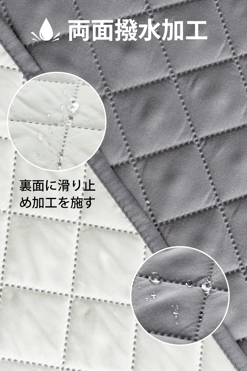 「TPU・両面撥水」表地は蓮の葉みたいに水をピッと弾きます。中材には、高品質のTPUフィルムを採用。2層のガードでソファをしっかり守るんです。飲み物のこぼれや、ペット、お子様のちょっとした汚れも、このカバーがしっかりカバーしますよ!