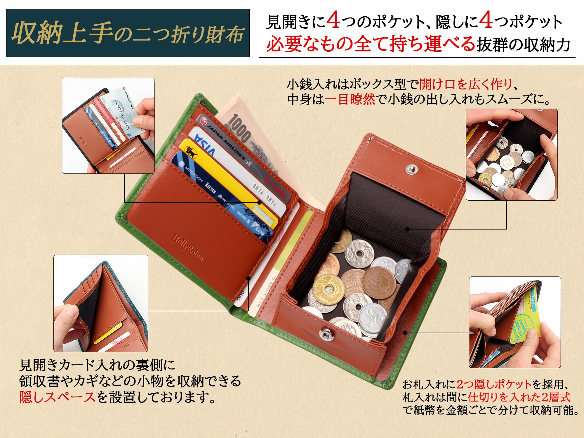 [HollyRobin] 財布 メンズ 2つ折り 本革 ボックス型小銭入れ 大容量 2つ折り財布 コンパクト 一流 の 財布 職人 が 作る 折りたたみ財布 ナッパレザー