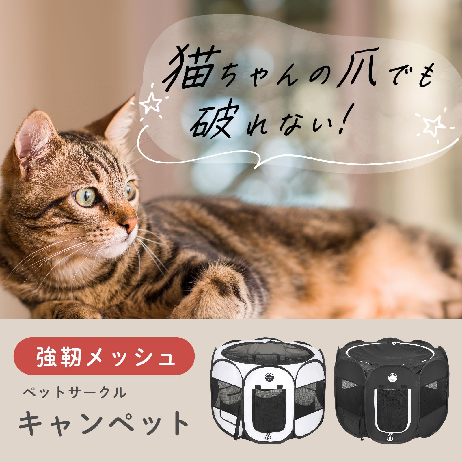 【新着商品】【猫専用】猫の爪でも破れない キャンペット/特殊メッシュ採用。結果、ワンちゃんにも最適でした。(収納袋付き) 折りたたみ式 ペットサークル (S/黒)幅75cm×高さ48cm ワンタッチ設営 猫 犬 兼用 ケージ 室内 アウトドア キャンプ 災害時にも役立ちます!
