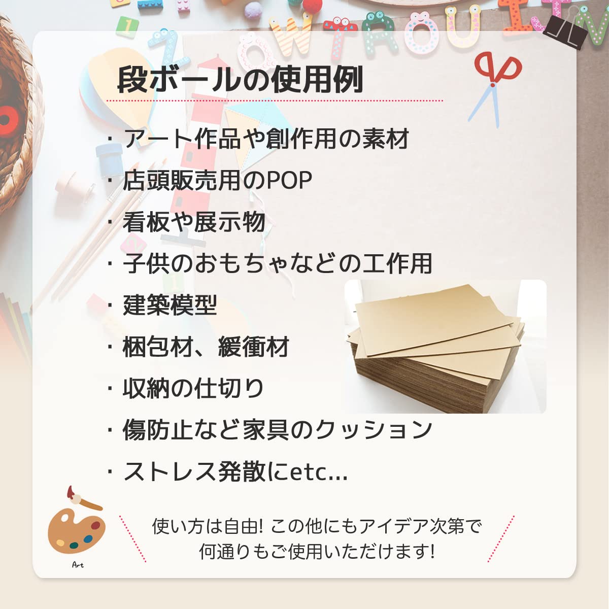 【使用用途】 学校行事で文化祭や発表会での使用 図工や美術 幼稚園でのダンボール工作 梱包材としてダンボールの底板や補強、レターパックや封筒での発送の際の商品の保護用の台紙として使用 そのほか 作品展 角あて 図工 お絵描き 教室 クラフト 文化祭 看板 学園祭 アート 芸術 美術 幼児教室 絵画教室 モンテ お稽古 POP モンテッソーリ 学芸会 展示物 梱包材 キッズアート 絵画 ペイント 緩衝材 クッション材 段ボール 防音 シート パット 自由研究 パネル 発表 台紙 補強 底板 業務用 梱包資材 下敷き レターパック ネコポス クリックポスト 定形外郵便 中学 高校 小学校 幼稚園 学校 保育園 頑丈 強い 使い捨て 資材 自治体 行事