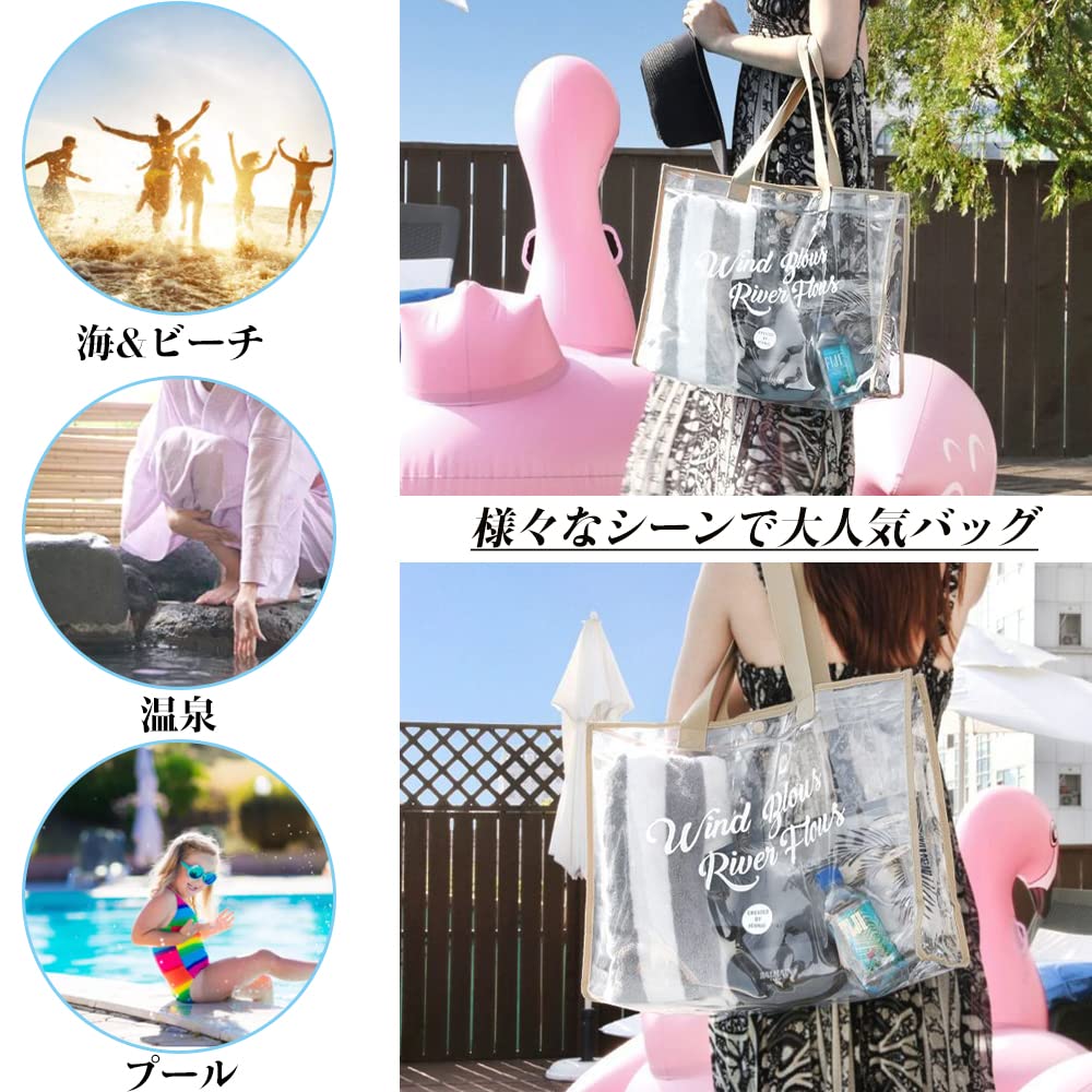 GOCROWEEN プールバッグ ビニールバッグ ビーチバッグ 透明バック トートバッグ 手提げ 防水 大容量 着替え収納 レディース 女の子 男の子 子供 大人・子供兼用 ビーチ 水泳 温泉 浴室 砂遊び 出張 旅行 スリッパ 化粧品入れ
