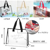 【商品仕様】:サイズ:47.5cm*35cm*15cm、重量:約240g、メイン素材: PVC、大容量で小物がガンガン入れるビニールバッグです。