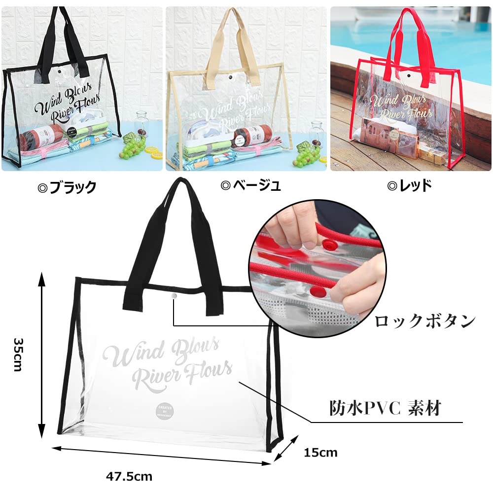 【大容量、収納力も抜群】:バスタオルや水着、パーカー、サンダルなどが余裕で入る大きさです!プールバッグとして使えだけじゃなくて、服、靴、化粧品、タオル、眼鏡、傘など全部入れる大容量!大きな収納空間なので、A4ファイルとお弁当が入るビニールトートバッグとして使う!透明なので、見つけたいものがすぐに見つけられます。