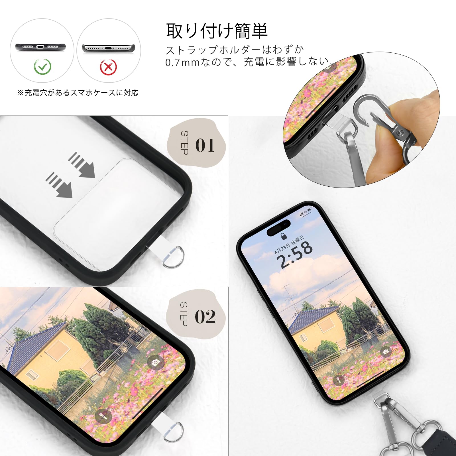[Warudo] ストラップ スマホ 携帯 ショルダース ホルダー 斜めがけ 首掛け 肩掛け 全機種対応 太め 紐 ナイロン ショルダーベルト ストラップホルダー 落下防止 長さ調節可能 スマホショルダー 単品 丈夫な 軽量 キーホルダー ネックスト