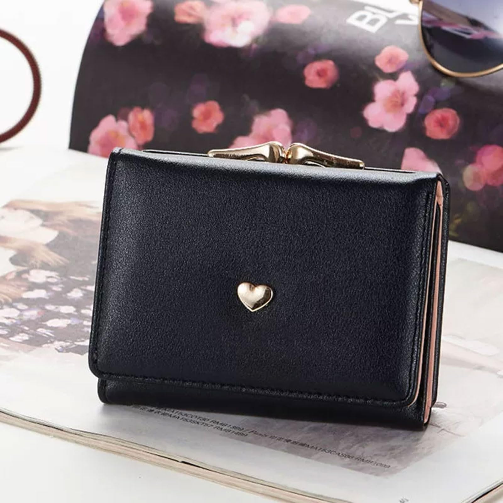 [Formemory] ミニ財布 レディース 三つ折り コンパクト 可愛い ハート 超軽量 多収納 スキミング防止 かるい かわいい 旅行財布 ミニウォレッ 小さめ 小銭入れ (ブラック)