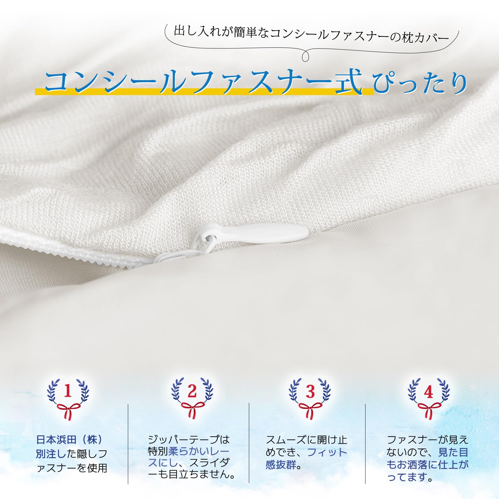 【リバーシブル デザイン】暑い夏には『接触冷感面』を肌側にして、素顔によろこぶひんやりタッチ!春、秋肌寒いときに『くしゅくしゅモダール面』を肌側にして、程よい厚みのふんわりタッチ!コットンの約4倍の『吸湿性』で吸水速乾優れ、いつでもサラっと爽やか、一年中使えるオールシーズン枕カバーです。