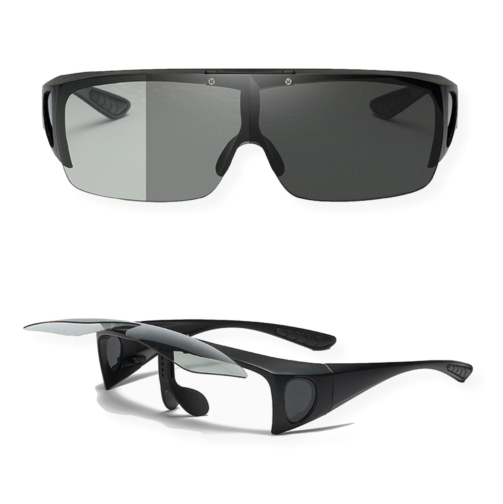 [REONAS] メガネの上から掛けられる 偏光 オーバーサングラス 跳ね上げ式 レンズ uvカット ドライブ 釣り ゴルフ アウトドア