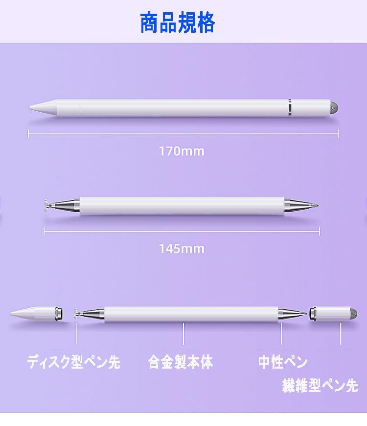 タッチペン スタイラスぺン iPhone iPad android設備 通用 接続不要 充電不要