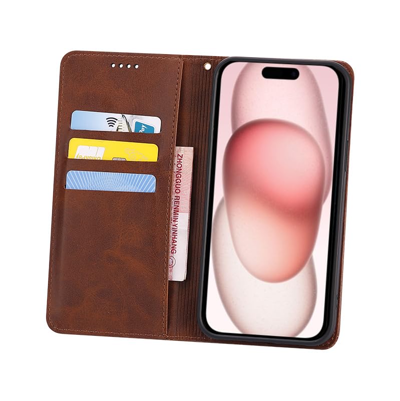 linlingo 手帳型 に適用するiPhone15対応 ケース 手帳型 手帳型ケース カバー PUレザー カード収納 財布型 耐衝撃 ケース マグネット スタンド機能付き (ダークブラウン)