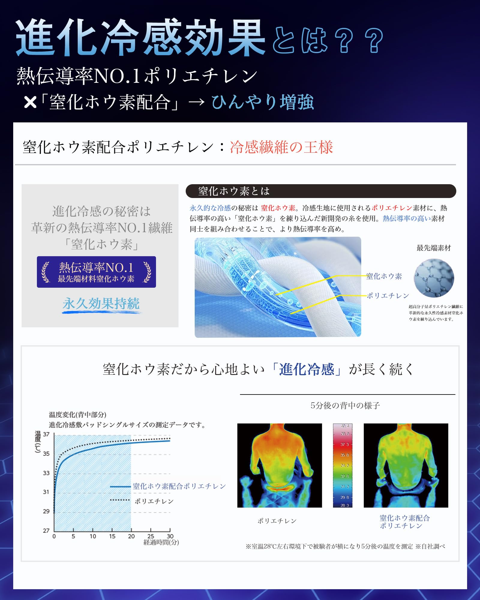 材質 吸湿冷感ナイロン, 天然レーヨン繊維, 熱伝導率NO.1繊維ポリエチレン, 革命冷感窒化ホウ素