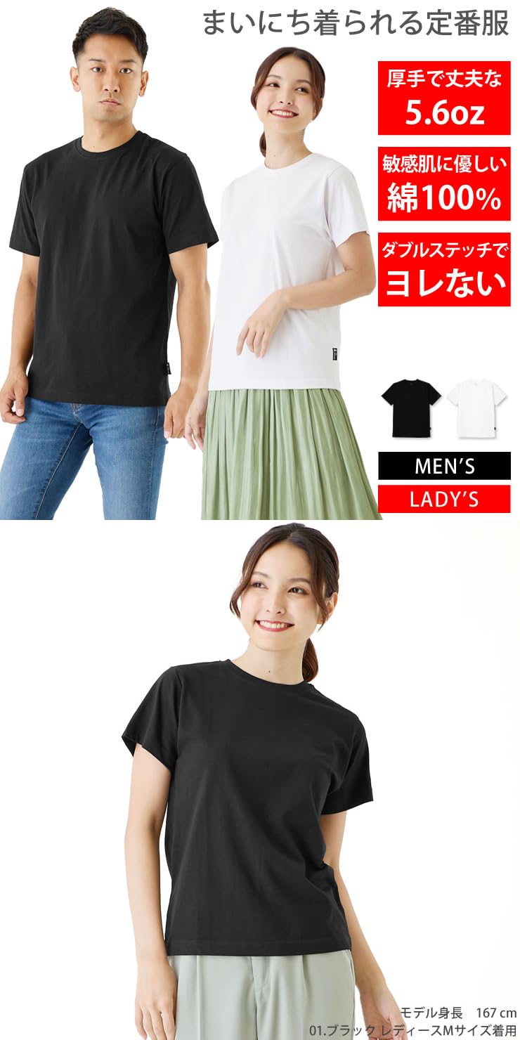 [ラドウェザー] Tシャツ レディース 半袖 綿100%だから長持ちで肌触りが良い 天然素材で敏感肌にも 5.6オンス 厚手