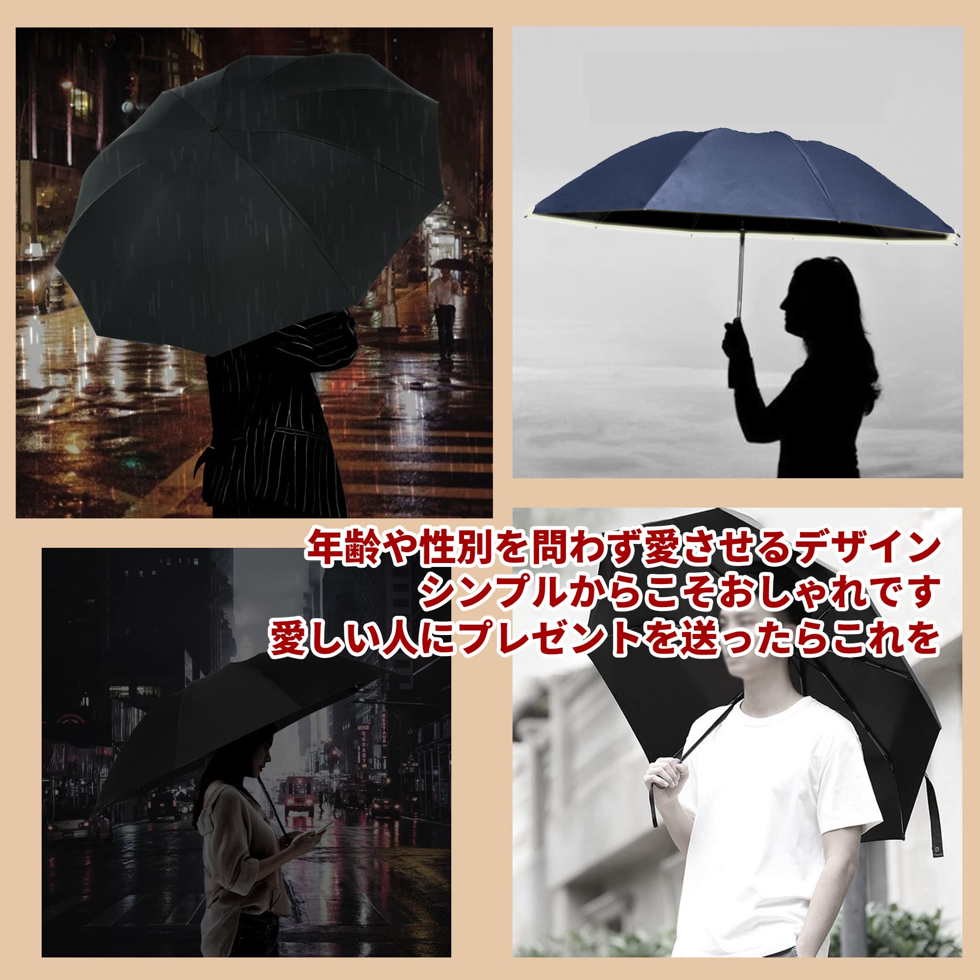 「シンプルだからこそ使えるジャンプ傘」年齢や性別を問わず愛させるデザイン。造りはしっかりしていて、片手でも楽々開けられる、カジュアルにもビジネスにも合う、コスパ最強のジャンプ傘。通勤、お買い物、お出かけ等の様々なシーンで不意の雨対策に重宝します。洗練された大人の雰囲気を出したい男性におすすめです。