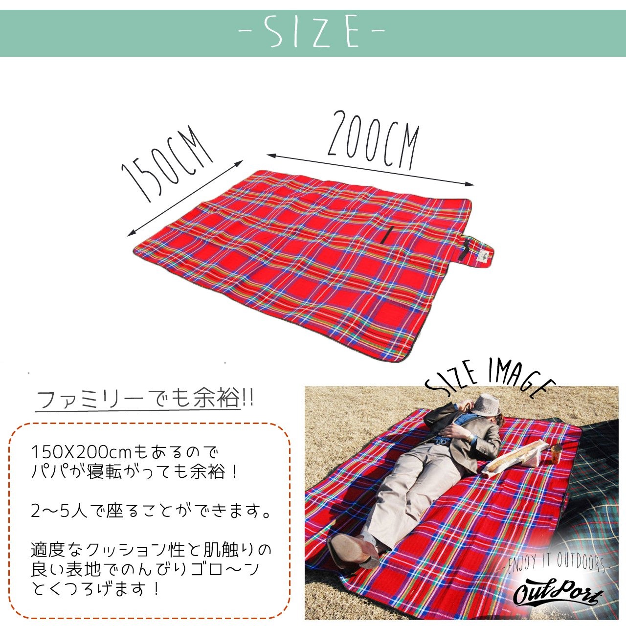 OutPort レジャーシート 大判 厚手 150×200cm 防水 コンパクト チェック柄 ピクニックマット (150×200cm 赤)