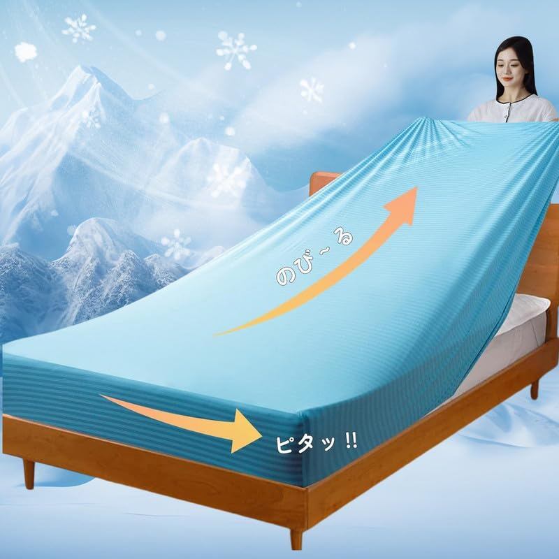 【商品サイズ・対応各2サイズ】(SS)スモールシングル(S)シングル兼用 。対応サイズ:約横85~100x縦200~210cm、まち3~28cmまで。【ひんやり冷感・通気】素材:ナイロン90%、ポリウレタン10%。接触冷感、速乾性通気性に優れ、蒸れなく、柔らかく、なめらかな肌触り、毛玉になり難く、ズレません。