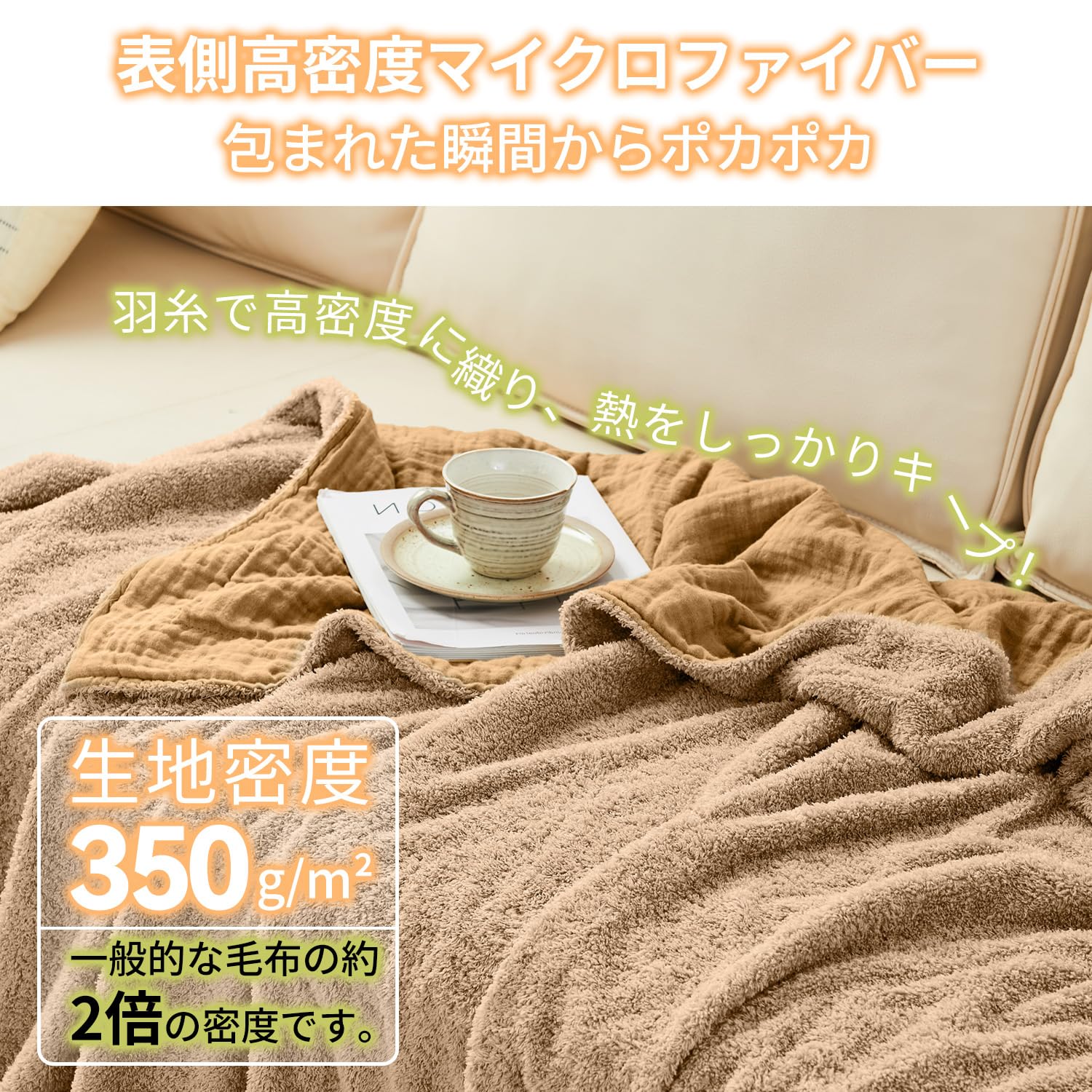 EMME 2枚合わせ ガーゼケット毛布 ハーフサイズ とろける3層ガーゼ&マイクロファイバー毛布 ブランケット 冬用 あったか毛布 ソファーカバー 柔らかい 暖かい 軽い 薄手 軽量 膝かけ 静電気防止 オールシーズン 車用 キャンプ 車中泊ラクダ127×152cm