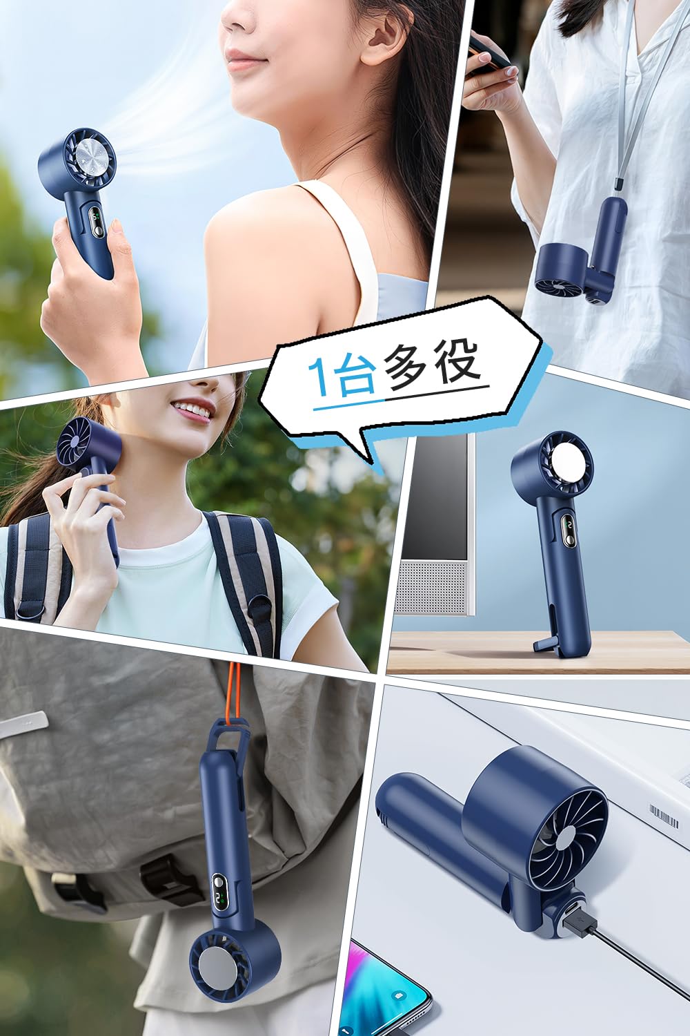 【新着商品】【2025革新型 -20℃瞬間冷却】 携帯扇風機 ハンディファン 冷感プレート付き 首掛け扇風機 5000mAh大容量 モバイルバッテリー機能 軽量 強力 usb充電式 卓上扇風機 手持ち 5段階調節 小型 ミニファン スタンド付き 折り畳み ストラップ付き LEDディスプレイ 熱中症対策 花火大会/スポーツ観戦/オフィス/アウトドアなどに適用 (ネイビー)