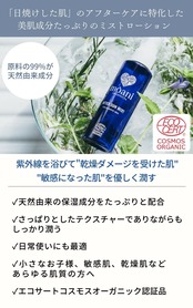1【「日焼けした肌」のアフターケアに特化】 火照って熱を帯び、敏感になった日焼け後のお肌は、少しでも早めに保湿ケアしてあげたい。アフターサンミストは、日焼け後の肌をスムーズにいたわるアフターケアに特化した化粧水です。紫外線を浴びて乾燥した肌を優しく潤し、滑らかで健やかな肌に整えてくれます。